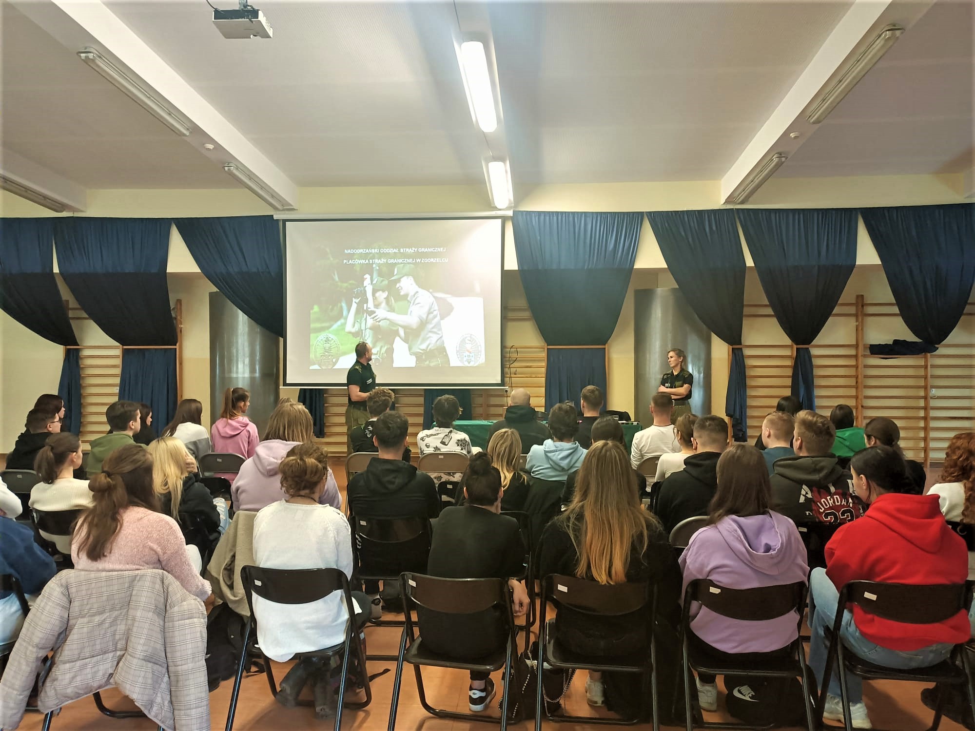 Młodzież zadawała wiele pytań, dotyczących specyfiki służby, zadań i obowiązków Straży Granicznej oraz możliwości rozwoju i kariery zawodowej w naszej formacji. Wiele pytań dotyczyło m.in. egzaminów, wymagań na teście sprawności fizycznej, a także wysokości zarobków. Nasi funkcjonariusze opowiadali o swojej pracy, dzięki temu uczestnicy spotkań mogli dowiedzieć się, jak obecnie funkcjonuje Straż Graniczna i jakie zmiany nastąpiły w ciągu ponad 30 lat istnienia tej formacji.