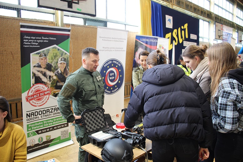 Funkcjonariusze Nadodrzańskiego Oddziału SG 29 i 30 marca wzięli udział w Targach Pracy w Gubinie oraz w „Dniach Doradztwa Zawodowego” zorganizowanych przez Zespół Szkół Ponadpodstawowych w Krośnie Odrzańskim. Imprezy skierowane były do uczniów ostatnich klas liceum, przyszłych maturzystów. Funkcjonariusze NoOSG zaprezentowali podczas prelekcji specyfikę pełnienia służby w Straży Granicznej, zadania i strukturę organizacyjną SG oraz zachęcali przyszłych maturzystów, wskazując na możliwości rozwoju i kariery zawodowej, do wstąpienia do służby w SG.