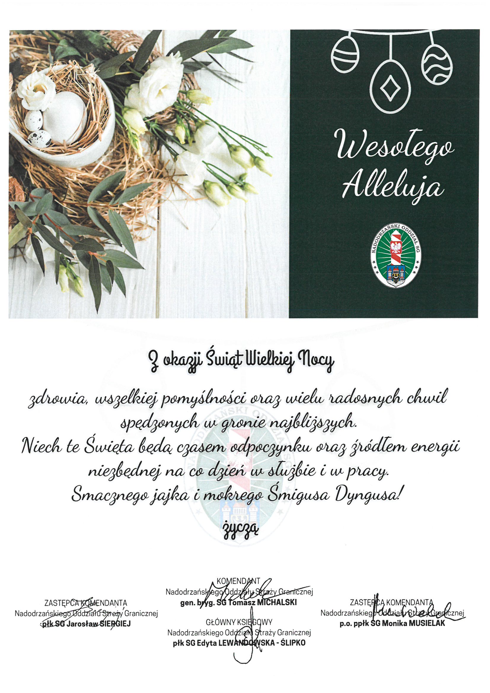 Życzenia Wielkanocne Komendanta Nadodrzańskiego Oddziału Straży Granicznej