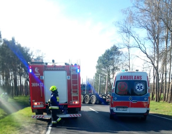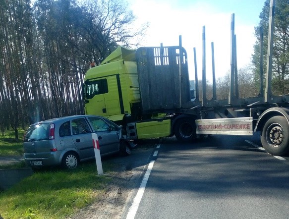 Podróżującą samochodem osobowym kobietę z małym dzieckiem pogotowie ratunkowe zabrało na szczegółowe badania do szpitala. Kierowca ciężarówki nie wymagał hospitalizacji.