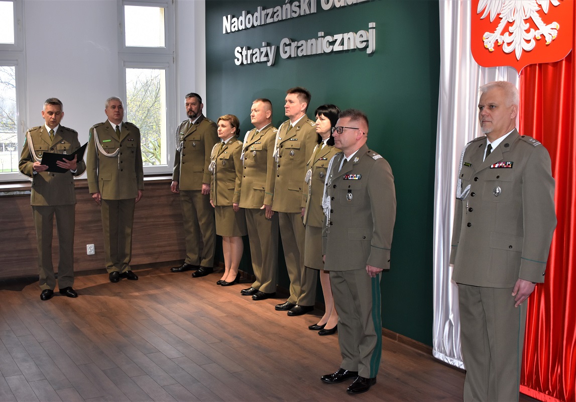 W Sali Tradycji Komendy Nadodrzańskiego Oddziału Straży Granicznej dzisiaj (14 kwietnia) miała miejsce uroczystość wręczenia aktów mianowań na stopień Straży Granicznej. Komendant Nadodrzańskiego Oddziału SG gen. bryg. SG Tomasz Michalski wręczył nowym chorążym oraz podoficerom akty mianowania na stopień odpowiednio: młodszego chorążego SG oraz kaprala SG. Funkcjonariusze SG odebrali akty mianowania w obecności kadry kierowniczej Nadodrzańskiego Oddziału SG.
