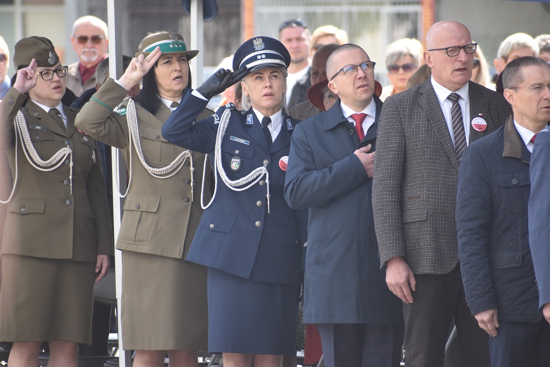 Zaraz po mszy kompania honorowa, poczty sztandarowe służb, instytucji i placówek oświatowych, parlamentarzyści, przedstawiciele służb mundurowych i lokalnych samorządów z powiatu krośnieńskiego oraz mieszkańcy Krosna Odrzańskiego zebrali się na placu św. Jadwigi Śląskiej przed Pomnikiem Obrońców Narodu, gdzie odegrany został hymn państwowy i wzniesiono biało-czerwoną flagę na maszt.
