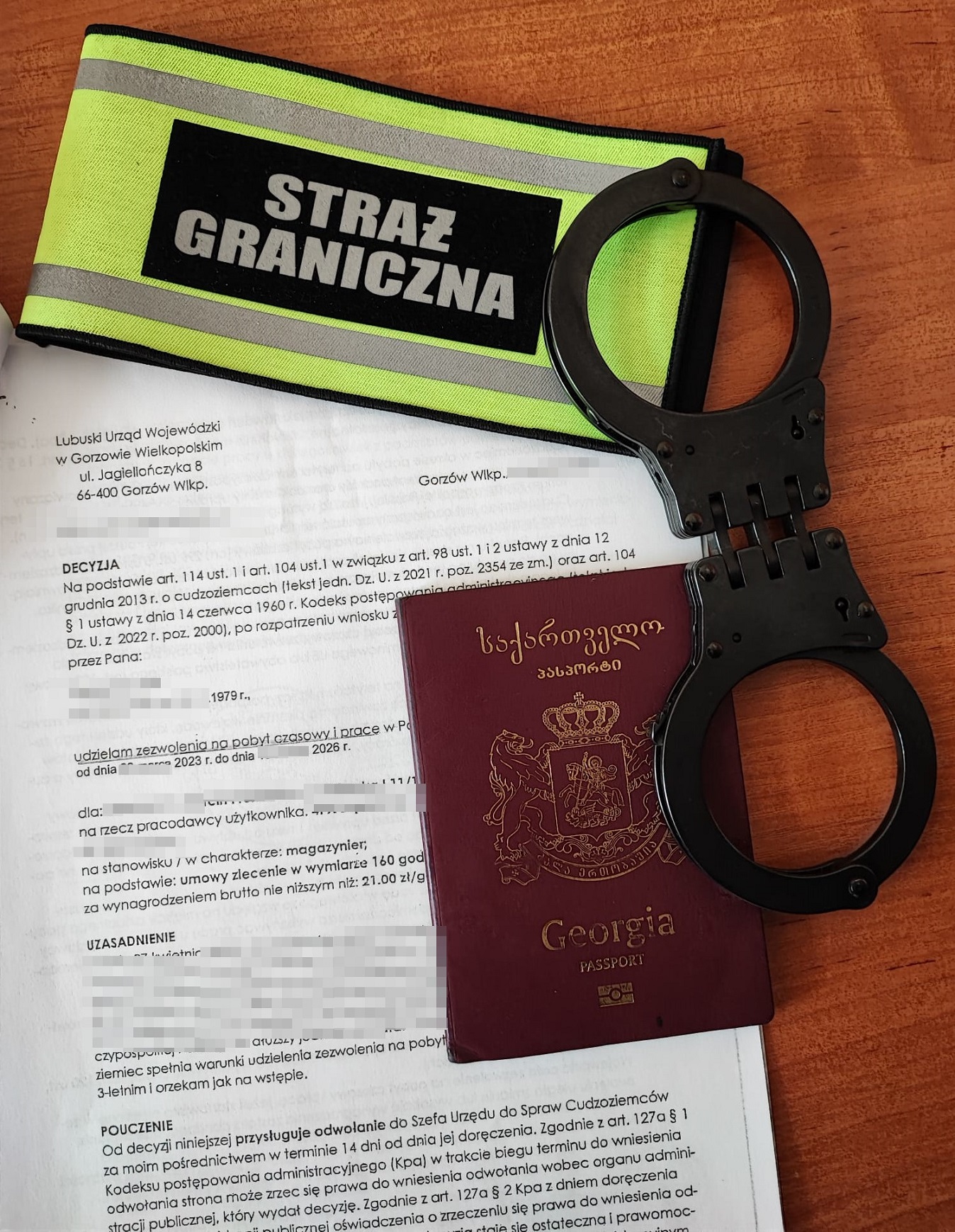 Funkcjonariusze SG z placówki w Gorzowie Wielkopolskim we wtorek 16 maja podczas realizacji zadań na terenie miasta przeprowadzili kontrolę legalności pobytu wobec 44-letniego obywatela Gruzji. Jak ustalili funkcjonariusze SG, cudzoziemiec złożył wniosek o pobyt czasowy i pracę w Polsce, jednak został on przez Wojewodę Lubuskiego w kwietniu br. rozpatrzony odmownie. Ustalono ponadto, że Gruzin w trakcie oczekiwania na rozpatrzenie wniosku przebywał na terytorium Niemiec. Funkcjonariusze przeglądając okazane przez cudzoziemca dokumenty - ku swojemu zdziwieniu - ujawnili pozytywną decyzję w sprawie udzielenia zezwolenia na pobyt czasowy i pracę. Dokument ten wystawiony na jego dane osobowe wzbudził u funkcjonariuszy SG zastrzeżenia co do jego autentyczności. Gruzin wypytywany przez funkcjonariuszy SG jak wszedł w posiadanie tego dokumentu, przyznał się, że dokument dostał od nieznanego mu Ukraińca w pliku „pdf”, za pomocą jednego z komunikatorów. Ponadto ustalono, że w celu uzyskania Karty Pobytu, obywatel Gruzji posłużył się podrobionym dokumentem jako autentycznym w Lubuskim Urzędzie Wojewódzkim w Gorzowie Wielkopolskim.