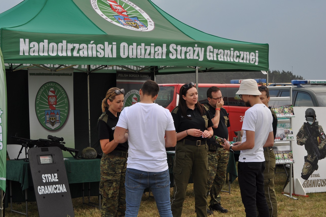 Tegoroczna impreza Antidotum Airshow Leszno 2023 była czwartą edycją pokazów lotniczych odbywających się na terenie Aeroklubu Leszczyńskiego. Pokazy w Lesznie to wydarzenie, które na stałe wpisało się do kalendarza najciekawszych imprez lotniczych w Polsce i w Europie. Do szerokiego grona wystawców podobnie jak w zeszłym roku dołączyli funkcjonariusze Nadodrzańskiego Oddziału Straży Granicznej. Impreza była doskonałą okazją aby przybliżyć tysiącom odwiedzających specyfikę naszej służby, pokazać sprzęt jakim dysponuje Straż Graniczna, ale przede wszystkim zainteresować uczestników pokazów prowadzonym naborem do naszej służby. Stoisko cieszyło się bardzo dużym zainteresowaniem zarówno wśród rodzin z dziećmi jak i młodzieży, zainteresowanej zarówno warunkami pełnienia służby w SG, jak również zagadnieniami bezpieczeństwa. To właśnie na taką młodzież, planującą w perspektywie związać swą przyszłość z mundurem, stawia nasza formacja. Funkcjonariusze prezentowali sprzęt jakim dysponuje formacja m.in. najnowsze samochody terenowe oraz broń i wyposażenie taktyczne, które w codziennej służbie wykorzystują funkcjonariusze.