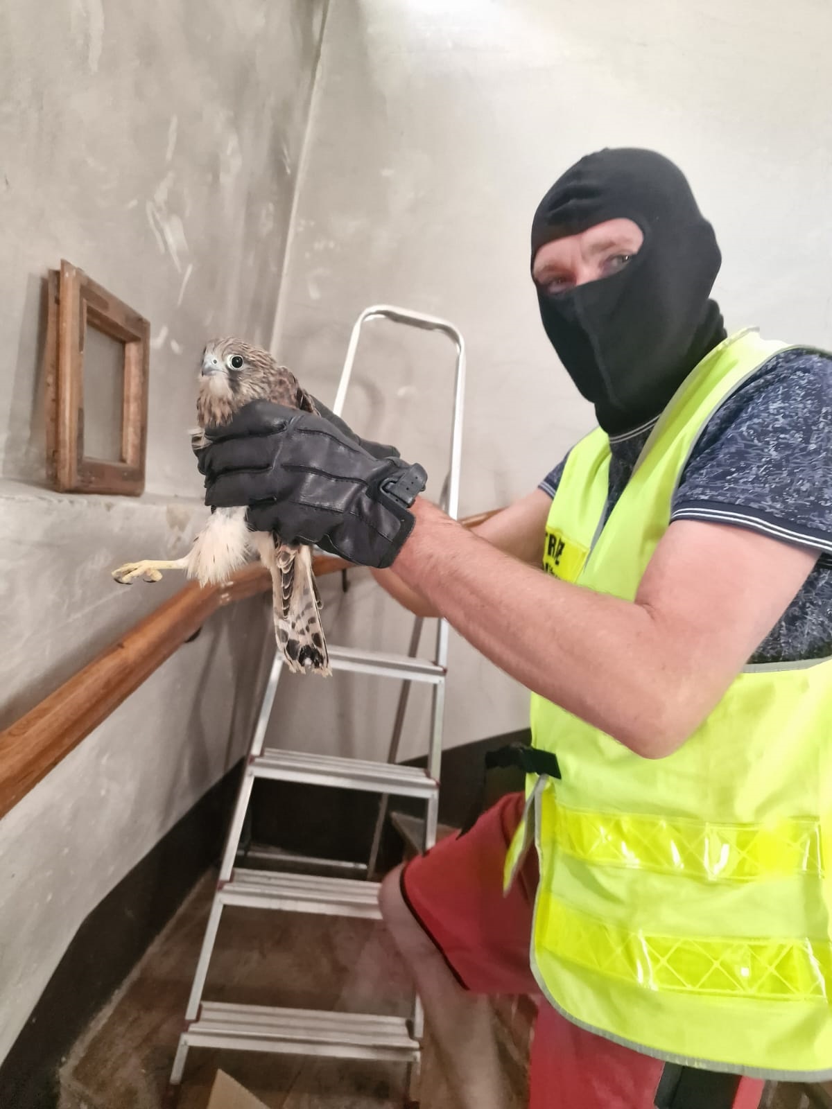 Dzisiaj 7 lipca w placówce Straży Granicznej w Legnicy wielkie poruszenie. Drabiny w ruch. Funkcjonariusze operacyjni Straży Granicznej z Legnicy przed budynkiem placówki zauważyli młodą pustułkę, która podczas próby nauki latania, wyleciała z gniazda i nie potrafiła do niego wrócić. Pustułka to jeden z najmniejszych i najczęściej spotykany sokół żyjący w naszym kraju. Pustułka - mama uwiła gniazdo w budynku Straży Granicznej, w najwyżej umieszczonym oknie doświetlającym strych. W związku z zagrożeniem czyhającym na młodego ptaka ze strony drapieżników (choćby naszych pupilów psów czy kotów), podjęto kroki celem ratowania młodziutkiego sokoła. Schwytane umiejętnie w rękawiczkach pisklę umieszczono ponownie w gnieździe, oddając je pod opiekę ptasich rodziców. Już po kilku godzinach legniccy funkcjonariusze zauważyli, że pisklę zostało czule przyjęte przez matkę.