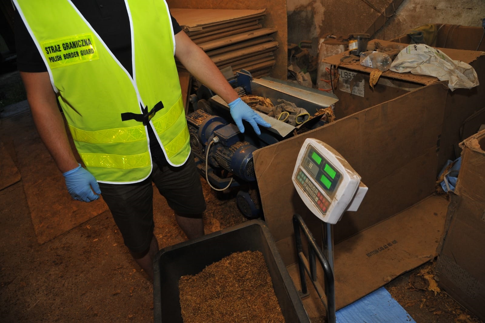 W środę 19 lipca funkcjonariusze Straży Granicznej z Kłodzka uzyskali informację, że na posesji mieszkańca powiatu kłodzkiego mogą znajdować się wyroby akcyzowe nielegalnego pochodzenia. Aby zweryfikować otrzymaną informację funkcjonariusze SG dokonali przeszukania zabudowań mieszkalnych i gospodarczych oraz znajdującego się na wskazanej posesji busa. Interwencja strażników granicznych okazała się trafiona, ponieważ w pomieszczeniach gospodarczych oraz w dostawczym busie znaleziono blisko dwie tony suszu tytoniowego pochodzącego z nielegalnego źródła, o czarnorynkowej wartości blisko miliona złotych. Ponadto funkcjonariusze zabezpieczyli maszyny wykorzystywane do cięcia i mieszania suszu tytoniowego, o szacunkowej wartości blisko 30 tysięcy złotych.