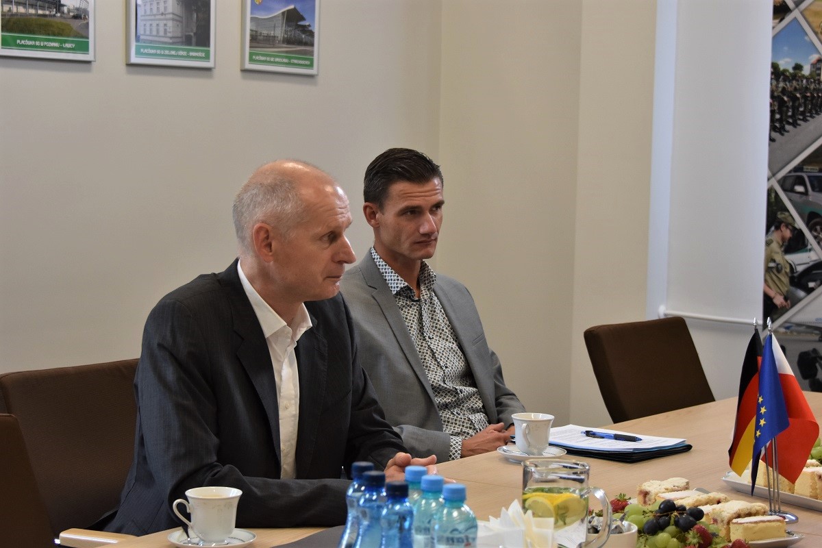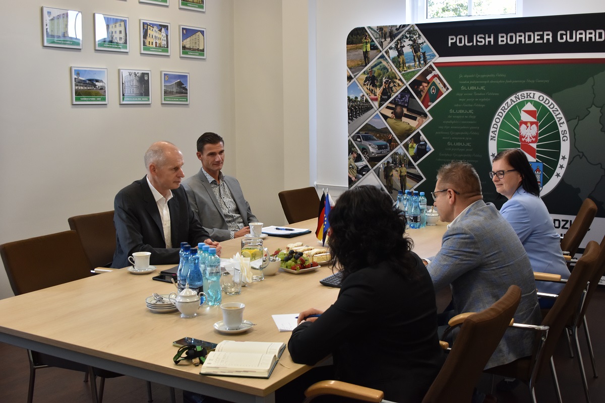 Gościa przywitał Komendant Nadodrzańskiego Oddziału Straży Granicznej gen. bryg. SG Tomasz Michalski. W spotkaniu uczestniczyli także: Pan Stephan Fischer Naczelnik Wydziału XIV Dyrekcji Policji Federalnej Niemiec w Pirnie, Oficer Łącznikowy SG przy Ambasadzie Polski w Berlinie ppłk SG Danuta Łazarczyk oraz Naczelnik Wydziału Analiz, Informacji i Współpracy Międzynarodowej NoOSG kpt. SG Małgorzata Dolot.