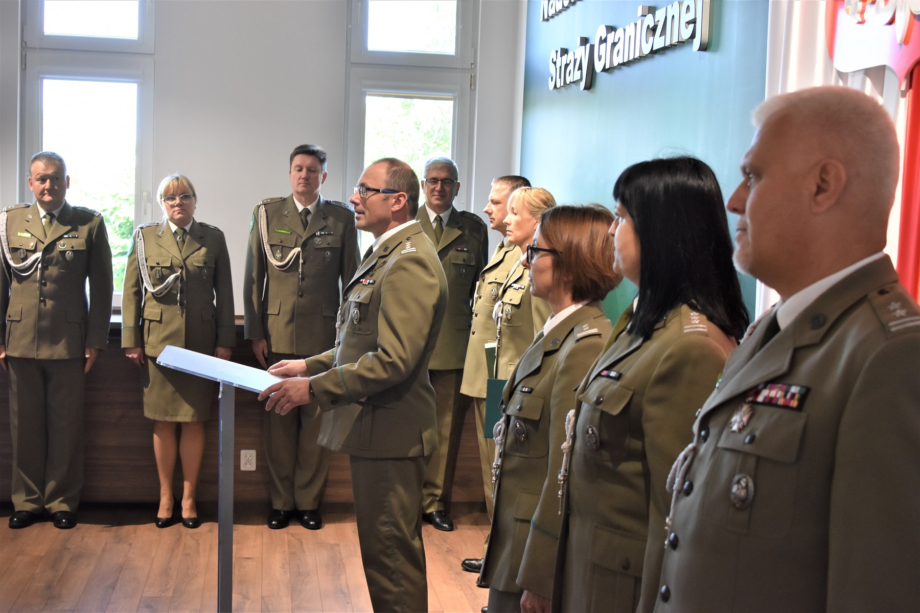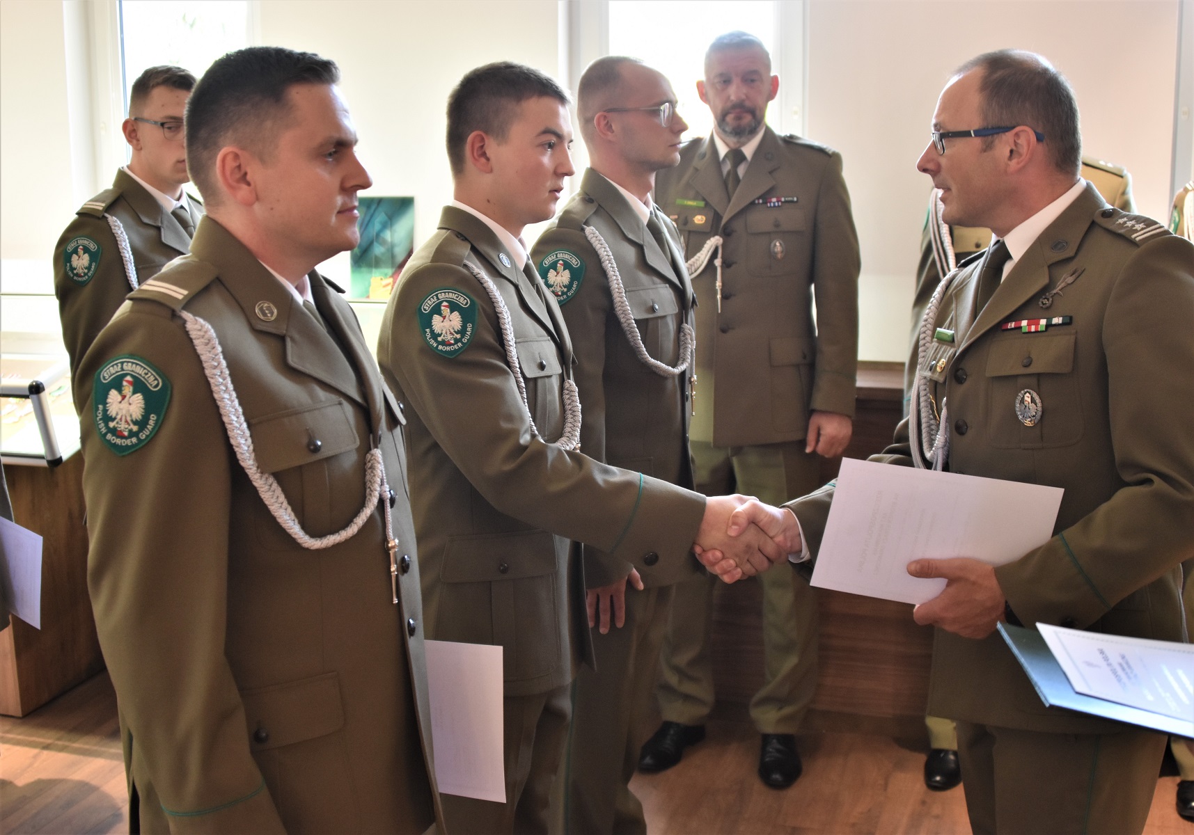 W Sali Tradycji Komendy Nadodrzańskiego Oddziału Straży Granicznej w piątek 11 sierpnia miała miejsce uroczystość wręczenia aktów mianowania na stopień Straży Granicznej. Zastępca Komendanta Nadodrzańskiego Oddziału Straży Granicznej płk SG Jarosław Siergiej wręczył nowym chorążym oraz podoficerom akty mianowania na stopień odpowiednio: młodszego chorążego SG oraz kaprala SG. Funkcjonariusze odebrali akty mianowania w obecności kadry kierowniczej Nadodrzańskiego Oddziału SG.