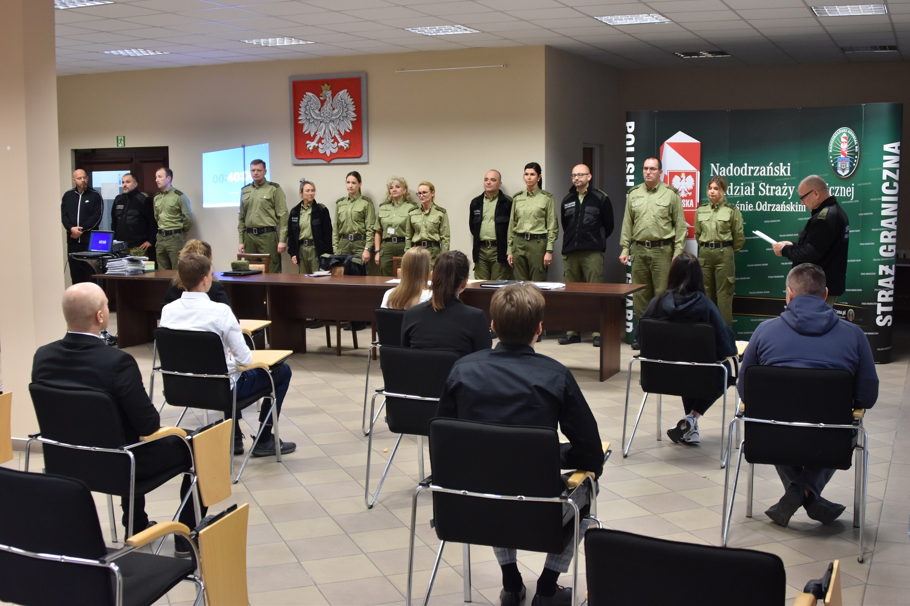 Dzisiaj 16 października w siedzibie Nadodrzańskiego Oddziału Straży Granicznej przeprowadzono drugi etap postępowania kwalifikacyjnego, do którego przystąpili kandydaci do służby w Straży Granicznej. Kandydaci zmierzyli się z testem z wiedzy ogólnej, z języka obcego oraz z testem sprawności fizycznej. Do tego etapu dotarło 26 kandydatów (8 kobiet i 18 mężczyzn).