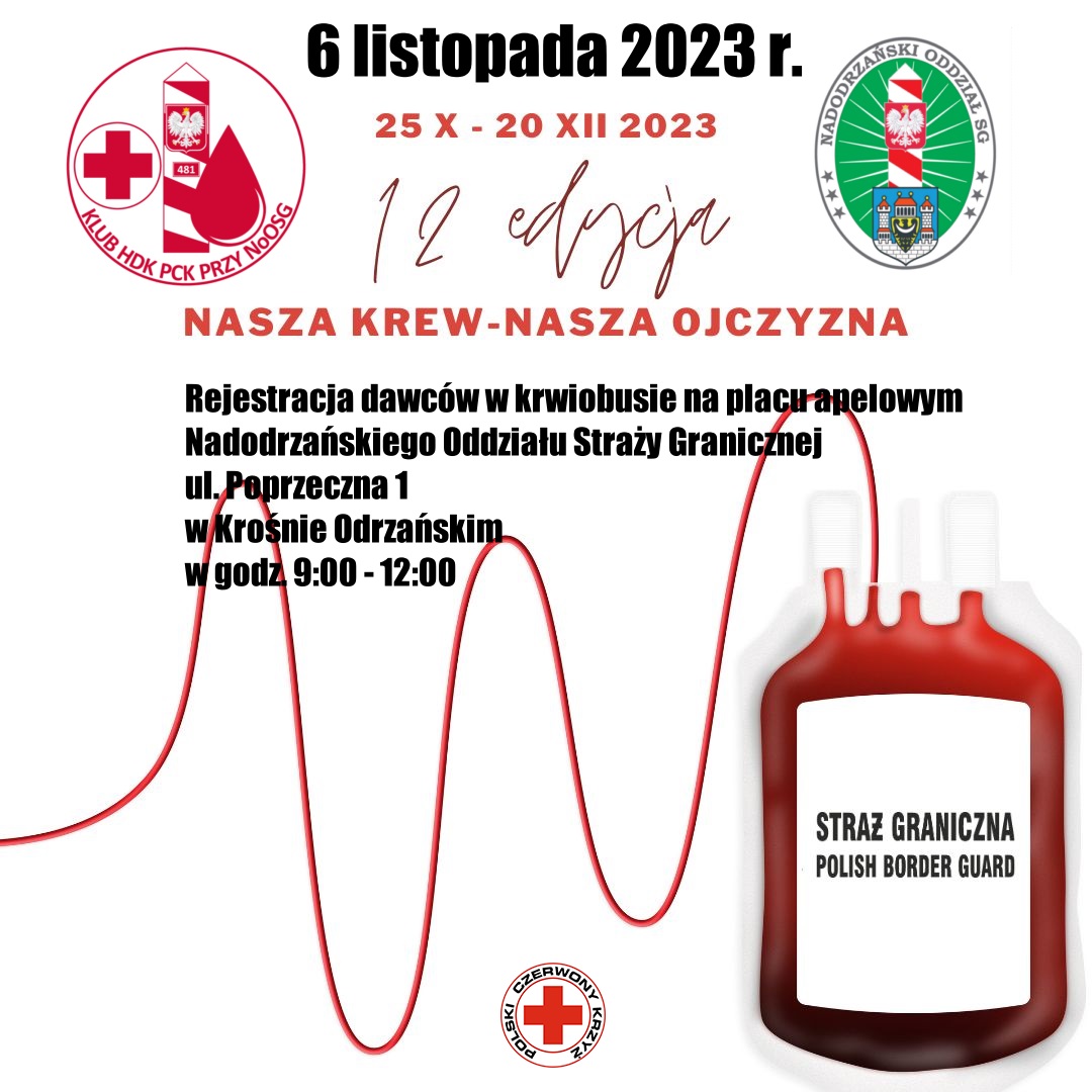 Tradycyjnie, jak co roku, uczestniczymy w akcji pod nazwą „Nasza Krew - Nasza Ojczyzna”, która została zainaugurowana przez Komendanta Głównego Straży Granicznej dla uczczenia Narodowego Święta Niepodległości.