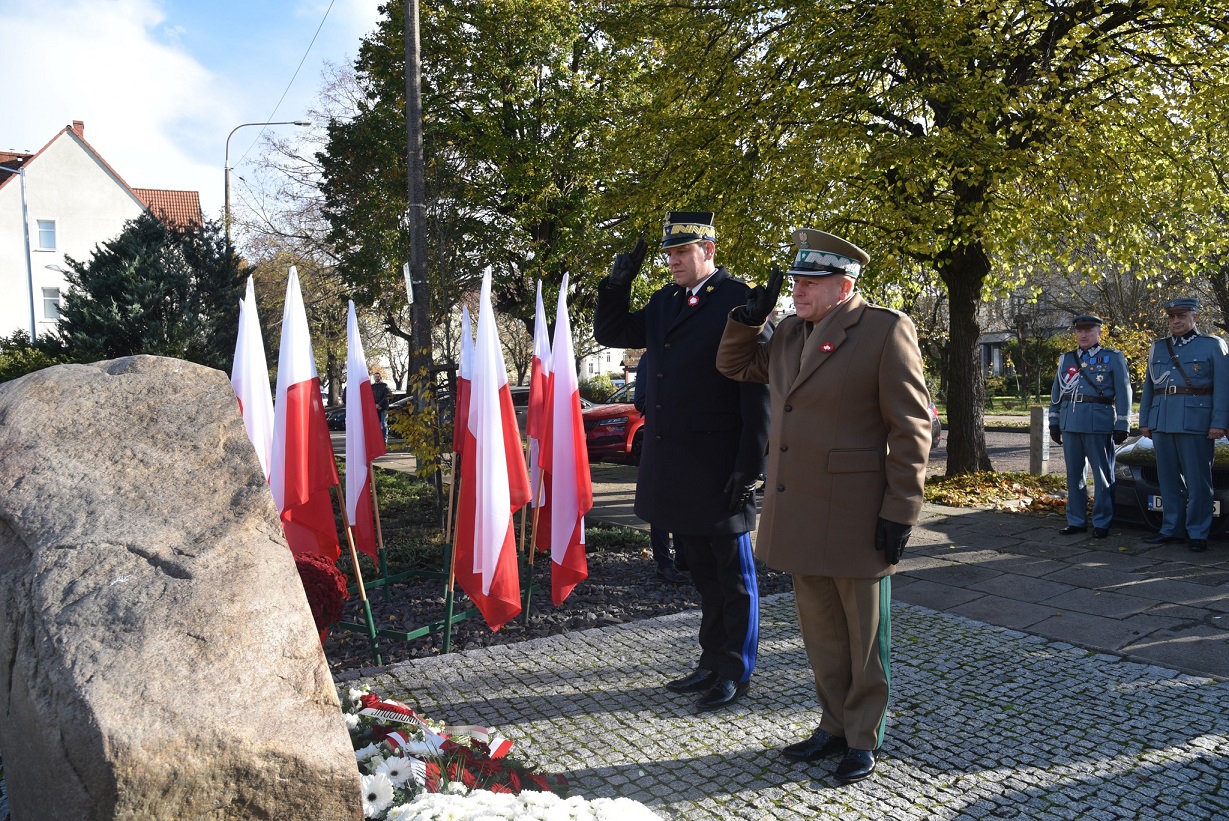 Jeszcze przed oficjalnym rozpoczęciem obchodów Narodowego Dnia Niepodległości Komendant Nadodrzańskiego Oddziału Straży Granicznej gen. bryg. SG Tomasz Michalski wraz z Lubuskim Komendantem Wojewódzkim Państwowej Straży Pożarnej złożyli hołd pod obeliskiem upamiętniającym patriotów walczących o wolną Polskę, który znajduje się przed budynkiem Lubuskiego Urzędu Wojewódzkiego.