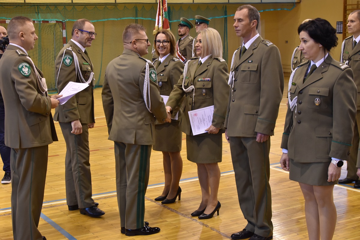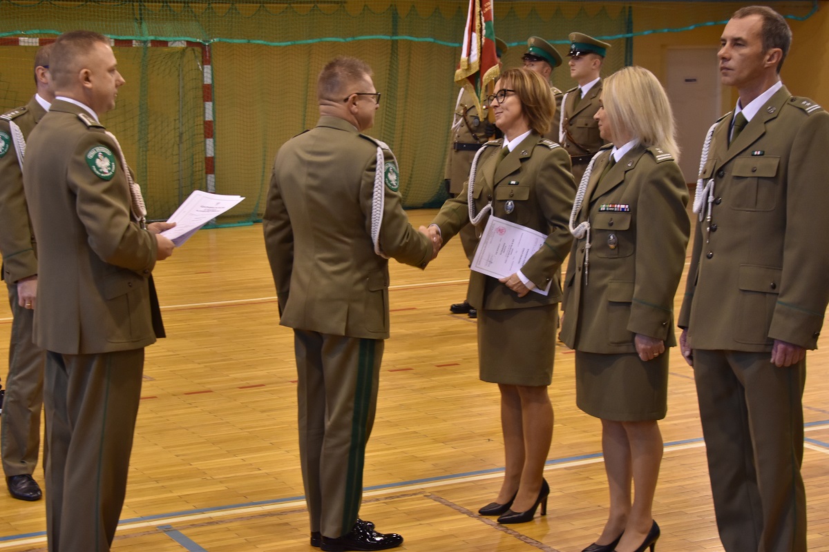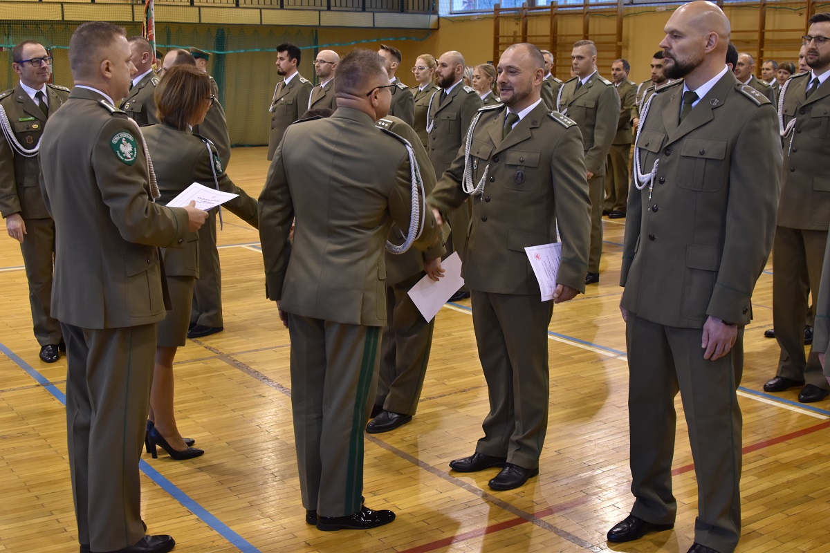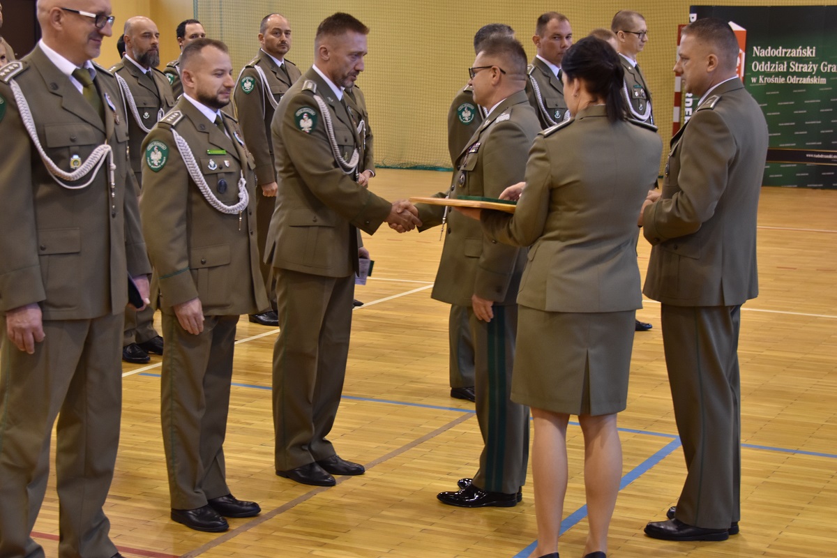 Przy okazji tego święta Komendant NoOSG wręczył pracownikom i funkcjonariuszom za zaangażowanie i osiąganie wysokich wyników w pracy oraz w służbie odznaki pamiątkowe Nadodrzańskiego Oddziału Straży Granicznej oraz nagrody rzeczowe.
