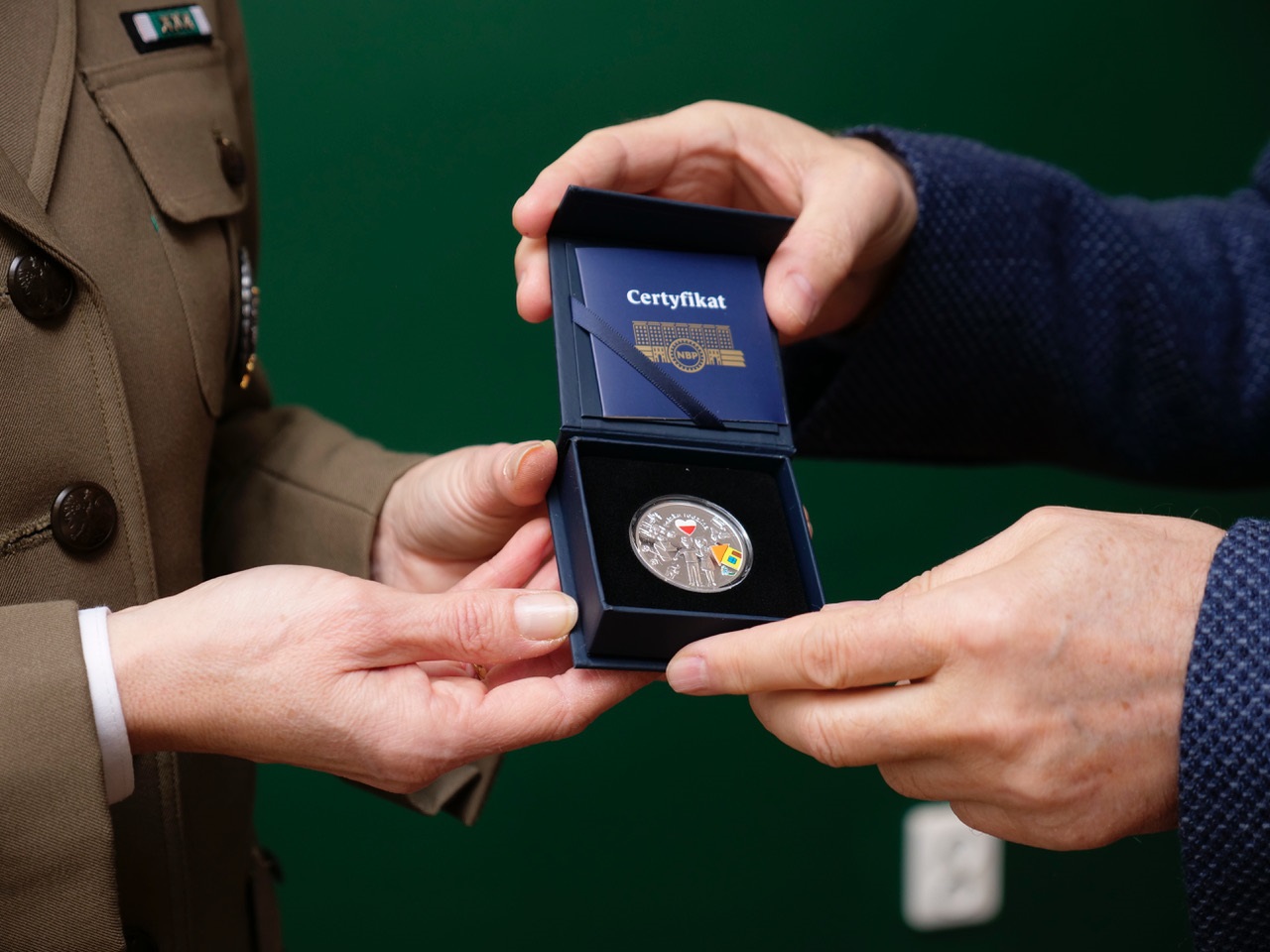 Srebrna, kolekcjonerska moneta została wprowadzona do obiegu przez Narodowy Bank Polski 10 maja 2023 r. Przekazane monety trafią do Stowarzyszenia „Łączy nas granica”. Kolekcjonerskie monety uroczyście odebrała z rąk Dyrektora Oddziału Okręgowego Narodowego Banku Polskiego w Zielonej Górze Pana Piotra Dopierały przedstawicielka stowarzyszenia mjr SG Katarzyna Kotopka – Łanda, kierownik Sekcji Organizacji Wydziału Organizacji i Promocji NoOSG.