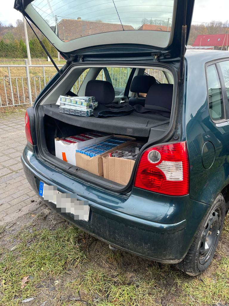 Funkcjonariusze Straży Granicznej ze Zgorzelca wspólnie ze Służbą Celno-Skarbową z dolnośląskiej KAS wykryli i zatrzymali wyroby tytoniowe pochodzące z nielegalnego źródła. Funkcjonariusze uzyskali informację, że w jednym z garaży w Bogatyni znajdują się wyroby tytoniowe bez polskich znaków skarbowych akcyzy. Funkcjonariusze udali się we wskazane miejsce, gdzie pies służbowy, wyszkolony do wykrywania wyrobów tytoniowych, wskazał podejrzany garaż. Szybko ustalono właściciela garażu, którym był mieszkaniec Bogatyni. Przeszukano jego posesję, garaże oraz należące do niego samochody osobowe. Podczas akcji wykryto 5650 paczek papierosów różnych marek oraz 82 kg krojonego tytoniu bez polskich znaków akcyzy o wartości blisko 150 tysięcy złotych. Mężczyznę zatrzymano. W trakcie prowadzonych czynności służbowych, zatrzymany przyznał się do przechowywania nielegalnego towaru.