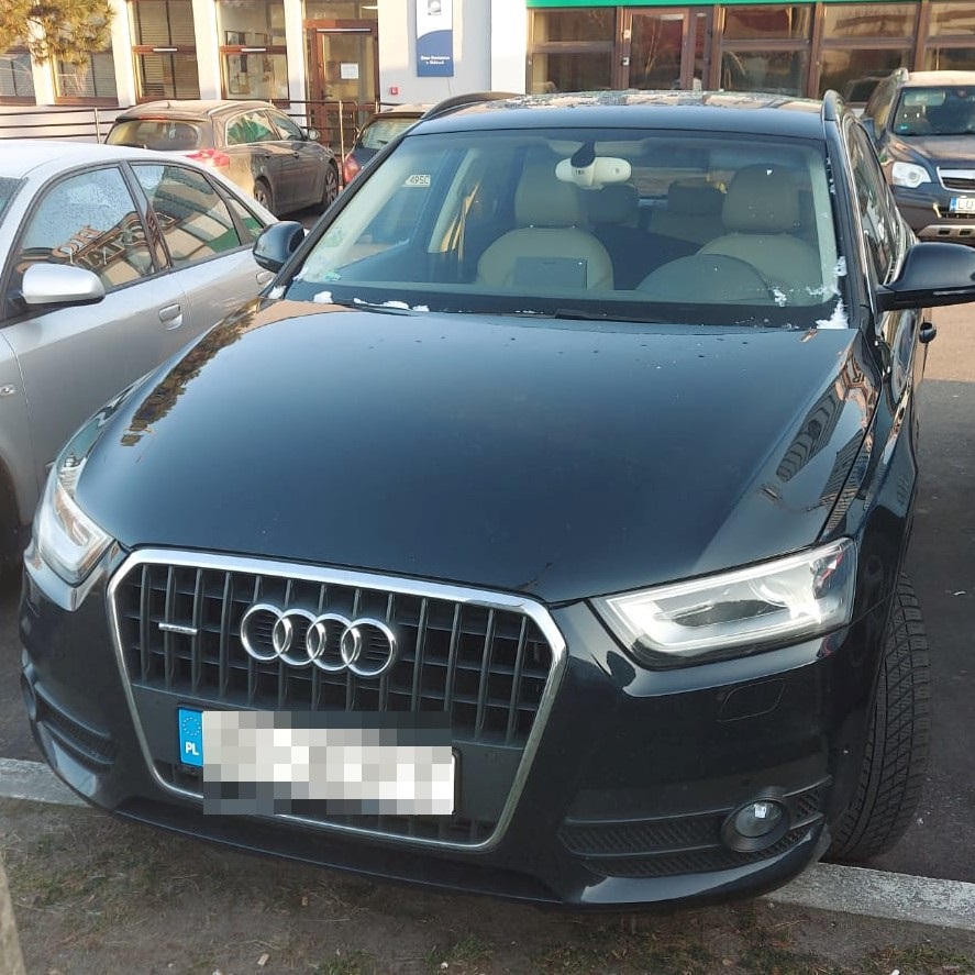 W poniedziałek w godzinach porannych (8 stycznia) funkcjonariusze SG ze Wspólnej Polsko-Niemieckiej Placówki w Świecku, na jednym ze słubickich parkingów zwrócili uwagę na zaparkowanego osobowego suva marki Audi Q3 na polskich tablicach rejestracyjnych. Funkcjonariuszy SG zainteresowały zamontowane numery rejestracyjne, odbiegające swym wyglądem od oryginalnych tablic. To od razu wzbudziło podejrzenia funkcjonariuszy, że auto może pochodzić z kradzieży. Wewnątrz pojazdu nie było kierowcy, ale auto było otwarte. Funkcjonariusze SG znaleźli w samochodzie leżące pod fotelem kierowcy oryginalne, niemieckie tablice rejestracyjne. Sprawdzenia dokonane w bazach danych SG potwierdziły, że audi zostało skradzione w nocy z niedzieli na poniedziałek (z 7 na 8 stycznia) na terytorium Niemiec, a niemieckie tablice ukryte w samochodzie, to oryginalne numery rejestracyjne należące do tego auta. Szacunkowa wartość odzyskanego pojazdu to 65 tysięcy złotych. Po zakończeniu czynności pojazd został zabezpieczony na parkingu strzeżonym. Dalsze postępowanie w tej sprawie prowadzi słubicka policja.