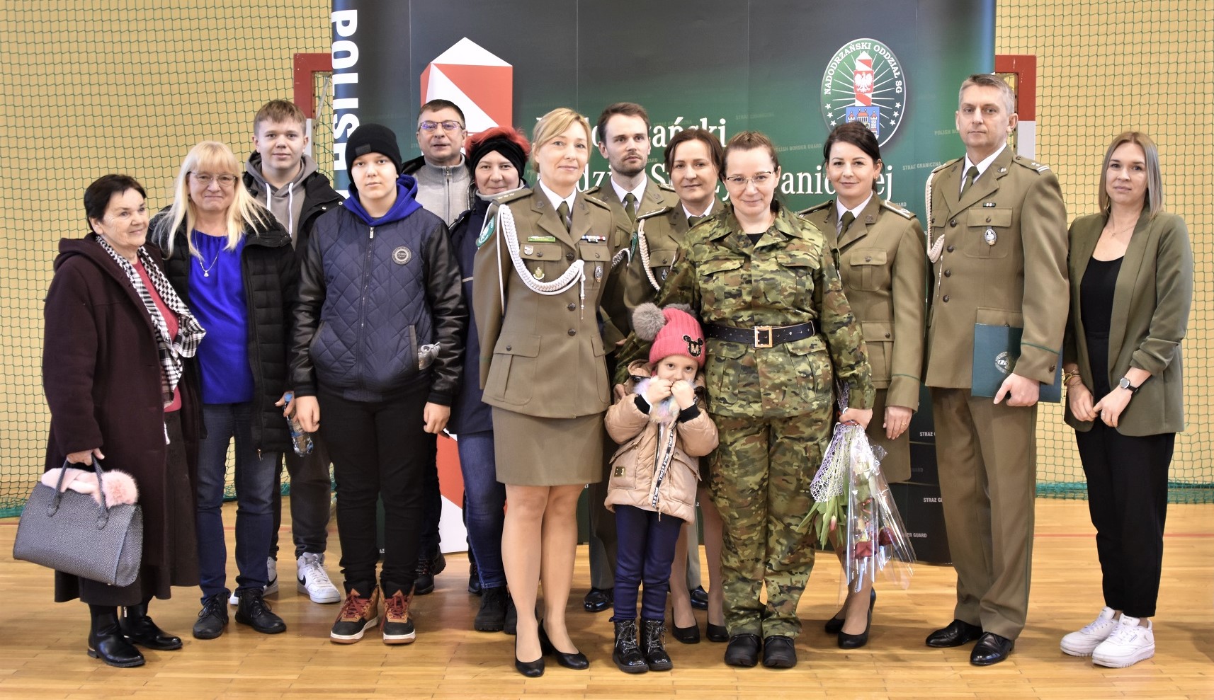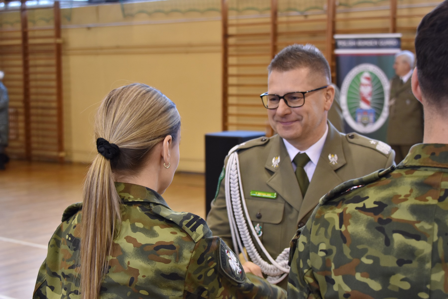 Komendant powitał młodych funkcjonariuszy w szeregach Nadodrzańskiego Oddziału Straży Granicznej. Pogratulował także funkcjonariuszom awansu na pierwszy stopień w korpusie podoficerów, podkreślił ich zaangażowanie i życzył satysfakcji z wykonywanych zadań. Życzył także, by kariera zawodowa była dla wszystkich młodych funkcjonariuszy motywacją do profesjonalnego wykonywania zadań i obowiązków służbowych.