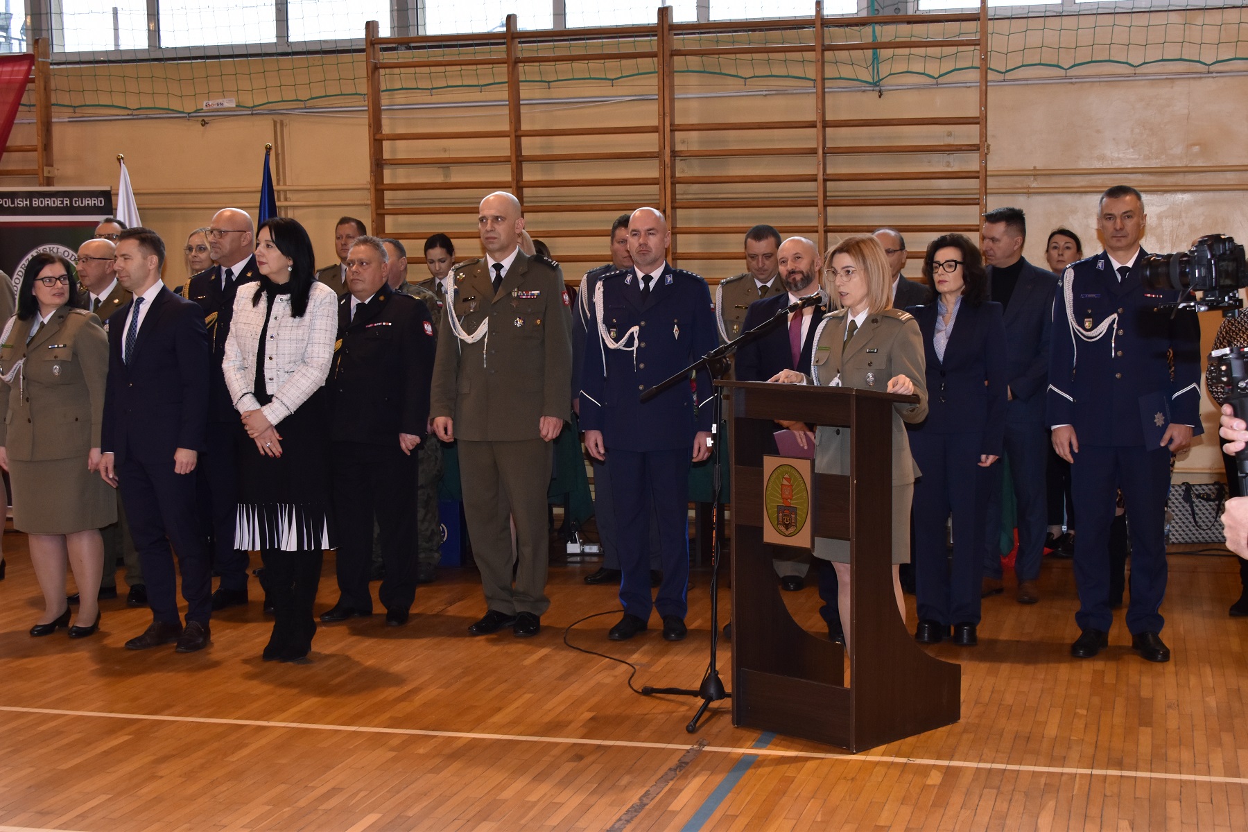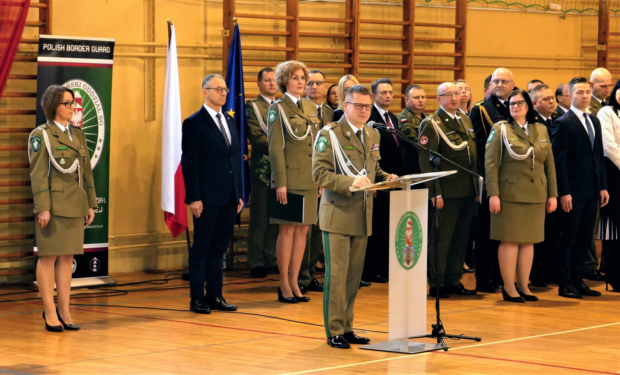 Podczas uroczystej zbiórki Dyrektor Biura Kadr i Szkolenia Komendy Głównej Straży Granicznej płk SG Joanna Kostecka odczytała zarówno decyzję Ministra Spraw Wewnętrznych i Administracji dotyczącą powołania z dniem 2 lutego na stanowisko Zastępcy Komendanta Głównego Straży Granicznej gen. bryg. SG Tomasza Michalskiego, jak również rozkaz personalny Komendanta Głównego Straży Granicznej o powierzeniu od dnia 2 lutego 2024 r. pełnienia obowiązków służbowych na stanowisku Komendanta Nadodrzańskiego Oddziału Straży Granicznej płk. SG Monice Musielak.
