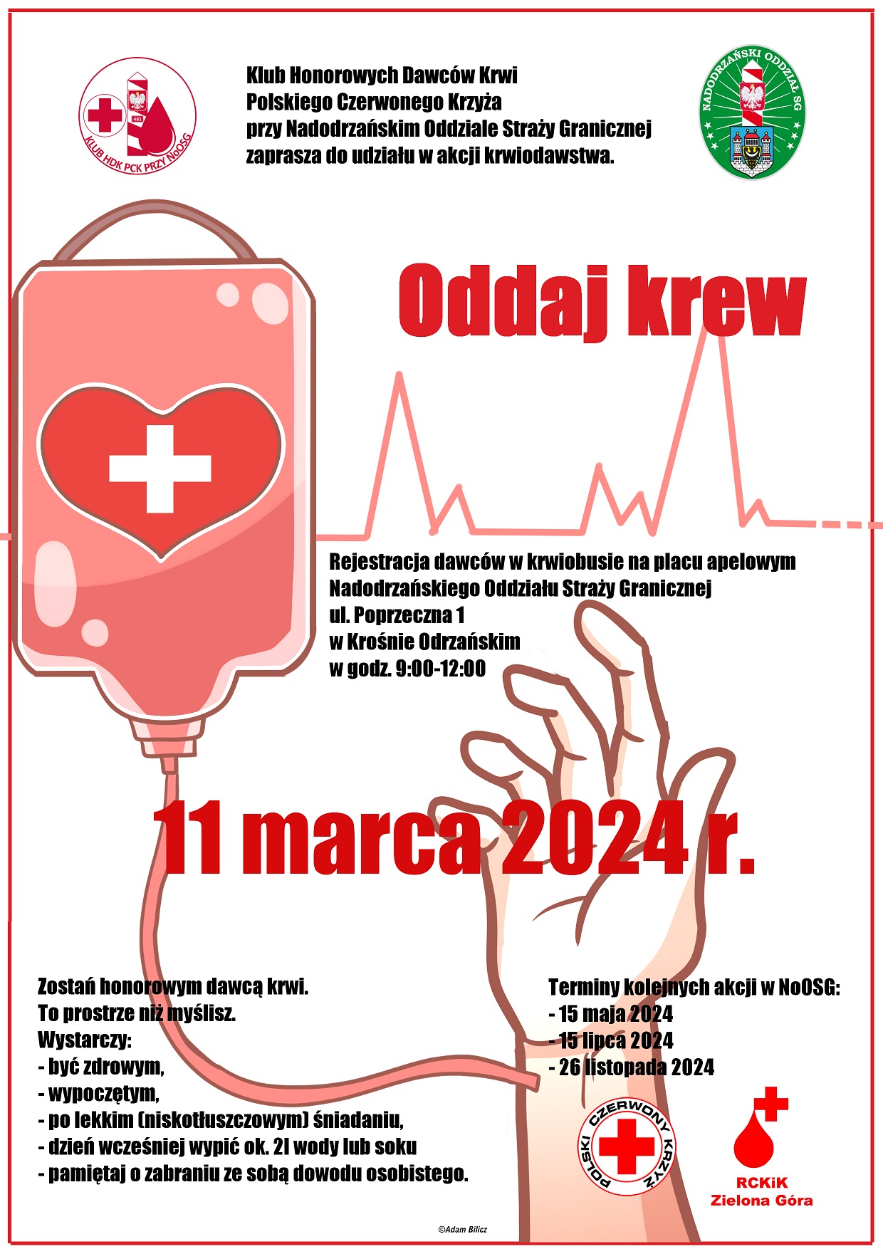 Wszystkich chętnych do udziału w akcji zaprasza Klub Honorowych Dawców Krwi Polskiego Czerwonego Krzyża przy Nadodrzańskim Oddziale Straży Granicznej.