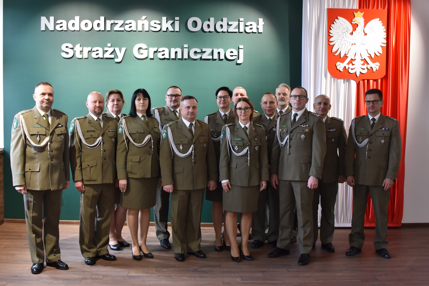 Pełniąca obowiązki Komendanta Nadodrzańskiego Oddziału Straży Granicznej płk SG Monika Musielak podczas uroczystej zbiórki w Sali Tradycji NoOSG dokonała dzisiaj uroczystego wprowadzenia ppłk. SG Krzysztofa Krawca na stanowisko zastępy Komendanta NoOSG do spraw granicznych. Po odczytaniu rozkazu Komendanta Głównego Straży Granicznej o powierzeniu obowiązków na tym stanowisku, płk SG Monika Musielak przybliżyła kadrze kierowniczej sylwetkę nowego Zastępcy Komendanta NoOSG oraz podkreśliła jego operatywność, doświadczenie i olbrzymi wkład dobrej energii w codzienną służbę w Straży Granicznej (przypomnijmy: ponad 30-letnie doświadczenie!). Pani Komendant NoOSG życzyła swojemu zastępy powodzenia i wielu sukcesów w wykonywaniu nowych zadań służbowych.