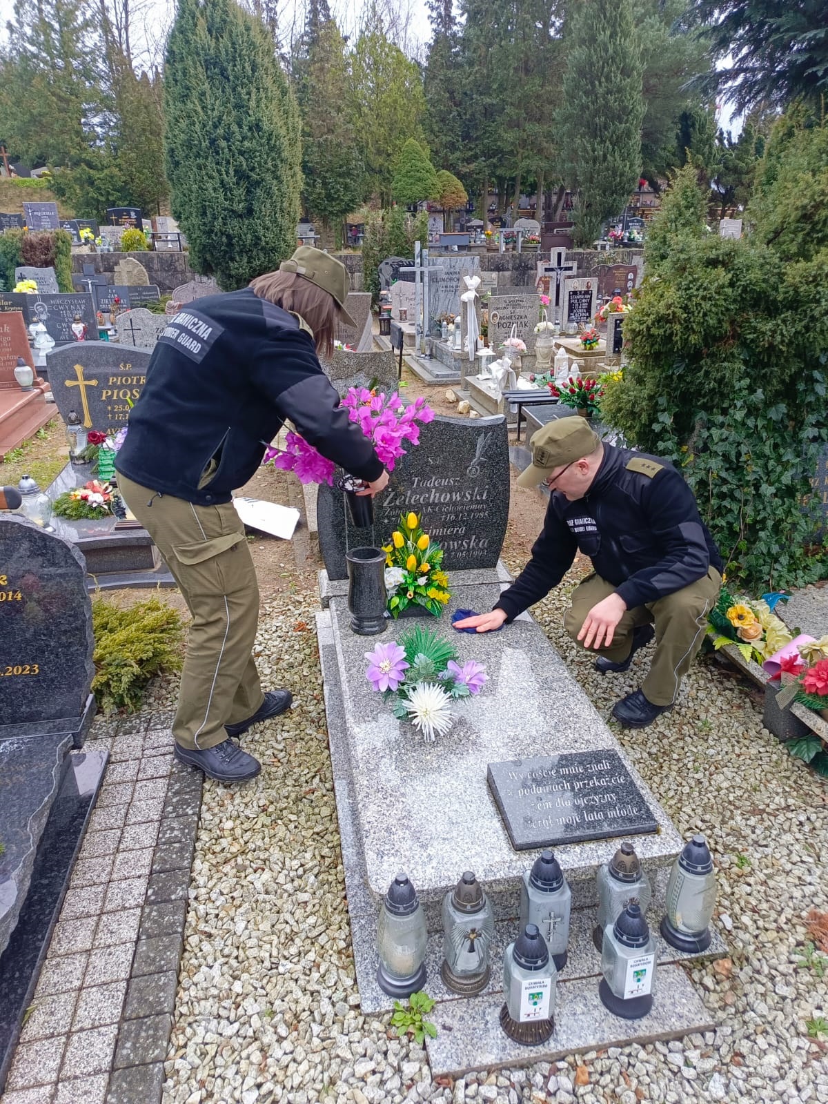 Okres przed Świętami Wielkanocnymi to czas szczególny, kiedy warto wspominać i pielęgnować pamięć o Naszych Bohaterach, którym nierzadko przyszło spocząć daleko od rodzinnych stron. W przedsięwzięciu funkcjonariuszy wziął udział pan Jacek Ogorzałek - członek Światowego Związku Żołnierzy Armii Krajowej, który od lat bada losy bohaterów i dokumentuje ich przeszłość. Wśród grobów odwiedzonych przez funkcjonariuszy znalazły się mogiły żołnierzy Armii Krajowej, cichociemych, członków zrzeszenia „Wolność i Niezawisłość”, ale przede wszystkim żołnierzy Korpusu Ochrony Pogranicza, którzy są szczególnie bliscy funkcjonariuszom Straży Granicznej. Wizyta naszych funkcjonariuszy na mogiłach bohaterów miała również wydźwięk symboliczny, bowiem w tym roku świętujemy 100-lecie powołania Korpusu Ochrony Pogranicza, który powstał w 1924 roku jako formacja stworzona do ochrony granicy wschodniej II Rzeczpospolitej. Formacja przez 15 lat swego istnienia odgrywała ważną rolę w systemie obronnym państwa. Głównym jej celem była ochrona polskiej granicy wschodniej oraz zapewnienie bezpieczeństwa wśród zróżnicowanej narodowościowo ludności Kresów Wschodnich. KOP zwalczał ponadto przestępstwa gospodarcze, obce wywiady oraz prowadził działalność oświatowo-kulturalną. Żołnierze korpusu wzięli także czynny udział w obronie granic we wrześniu 1939 r., przeciwstawiając się w miarę swoich możliwości, wielokrotnie liczniejszej Armii Czerwonej.