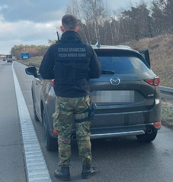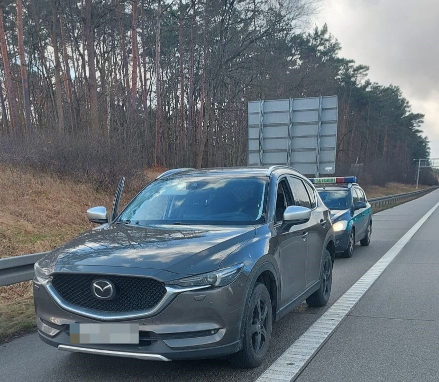 W czwartek po południu (28 marca) funkcjonariusze SG ze Świecka, wykonując czynności służbowe w rejonie autostrady A2, wytypowali do kontroli drogowej jadącą od strony Niemiec osobową mazdę. Podczas kontroli wylegitymowano kierowcę pojazdu 35-letniego Polaka, który oświadczył, że nie posiada żadnych dokumentów do tego pojazdu, nie potrafił również wyjaśnić w jaki sposób wszedł w jego posiadanie. Przyznał jedynie, że mazdą miał przejechać z Niemiec do Polski. To od razu wzbudziło podejrzenia funkcjonariuszy, że pojazd może pochodzić z kradzieży. Mazda CX-5 miała założone niemieckie tablice rejestracyjne, które okazały się podrobione na wzór oryginalnych. Jak się okazało, zatrzymany przez funkcjonariuszy samochód został tydzień temu skradziony na terytorium Niemiec. 35-latka zatrzymano. Kierowca podejrzany o kradzież samochodu usłyszy prokuratorskie zarzuty. Szacunkowa wartość odzyskanego pojazdu (rocznik 2020), to 100 tys. złotych. Po zakończeniu czynności pojazd został zabezpieczony na parkingu strzeżonym.