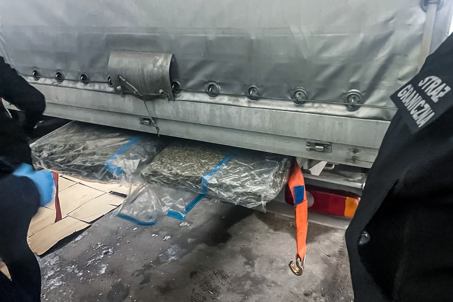 W ostatnim czasie funkcjonariusze Nadodrzańskiego Oddziału Straży Granicznej z Placówki w Zgorzelcu wspólnie z policjantami z poznańskiego CBŚP i Dolnośląskiego Urzędu Celno-Skarbowego we Wrocławiu, przeprowadzili działania w Jędrzychowicach w pobliżu polsko-niemieckiej granicy, w wyniku których zatrzymali jedną osobę i udaremnili przemyt ponad 100 kg marihuany. Zatrzymany kierował samochodem ciężarowym, wewnątrz którego funkcjonariusze ujawnili narkotyki ukryte w specjalnej skrytce, umiejscowionej pomiędzy podłogą przestrzeni ładunkowej, a podwoziem pojazdu.