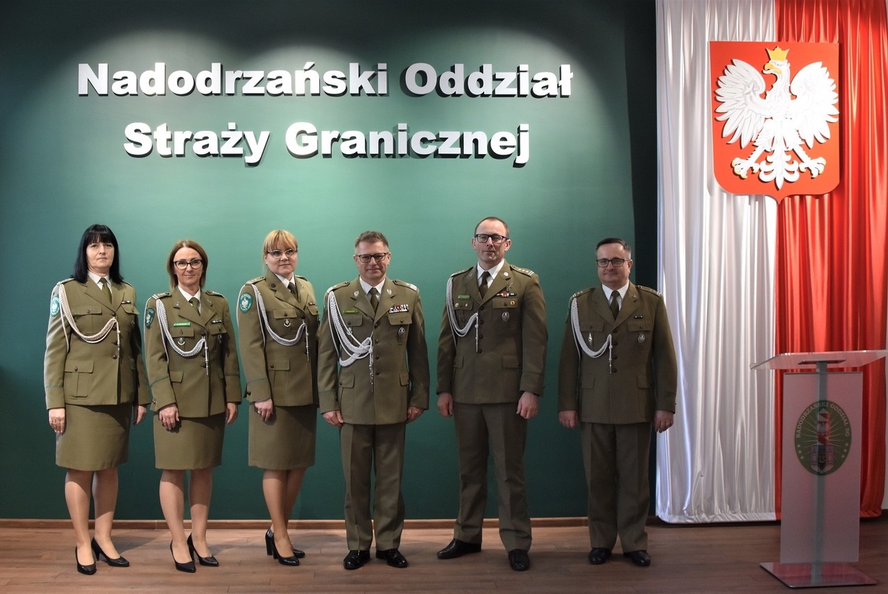 Szczególne podziękowania oraz wyrazy uznania za dotychczasową służbę w Nadodrzańskim Oddziale SG gen. bryg. SG Tomasz Michalski oraz płk SG Monika Musielak skierowali w stronę dotychczasowego Zastępcy Komendanta NoOSG płk. SG Jarosława Siergieja, który rozkazem Komendanta Głównego Straży Granicznej z dniem 4 kwietnia objął równorzędne stanowisko w kierownictwie Nadwiślańskiego Oddziału SG.