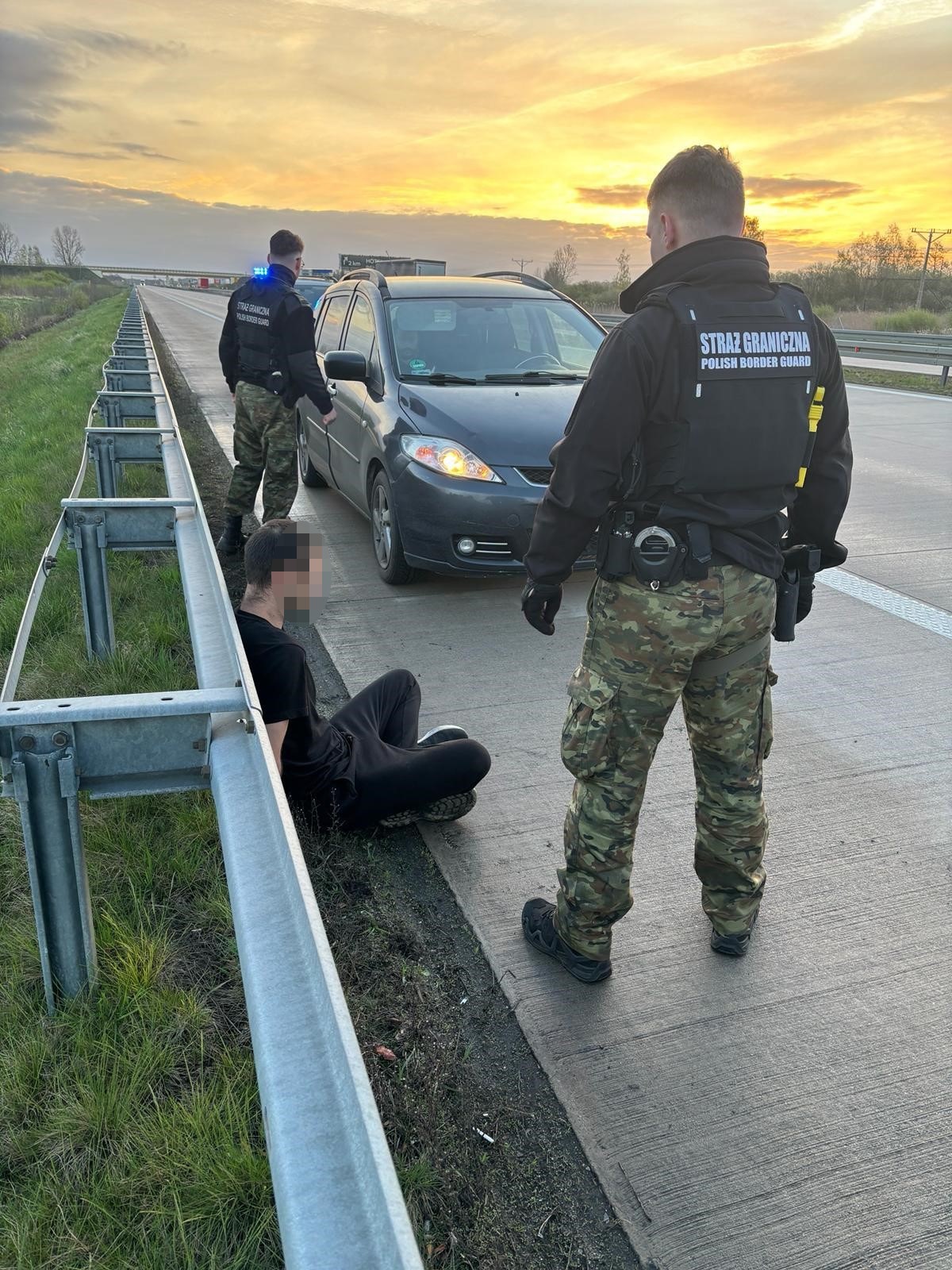 Z kolei funkcjonariusze Straży Granicznej z Legnicy 6 kwietnia na autostradzie A4 po skierowaniu do kontroli osobowej mazdy, zatrzymali kierowcę pojazdu 47-letniego Gruzina, który pomagał pięciu Erytrejczykom w nielegalnym przekroczeniu polsko-niemieckiej granicy. Migranci nie posiadali żadnych dokumentów potwierdzających tożsamość oraz legalność pobytu w Polsce. Zatrzymano ich za usiłowanie przekroczenia polsko-niemieckiej granicy bez wymaganych dokumentów. Do czasu potwierdzenia tożsamości cudzoziemców oraz wydania decyzji zobowiązujących Erytrejczyków do powrotu, mężczyźni zostali umieszczeni w strzeżonym ośrodku dla cudzoziemców. Obywatela Gruzji zatrzymano za udzielenie pomocy migrantom w organizowaniu przekroczenia wbrew przepisom polsko-niemieckiej granicy, przyznał się do zarzucanych mu czynów i skorzystał z prawa do dobrowolnego poddania się karze 1 roku pozbawienia wolności w zawieszeniu. Dodatkowo wobec mężczyzny wszczęto postępowanie w sprawie zobowiązania do powrotu. Do jego zakończenia, decyzją sądu, został umieszczony w strzeżonym ośrodku dla cudzoziemców.