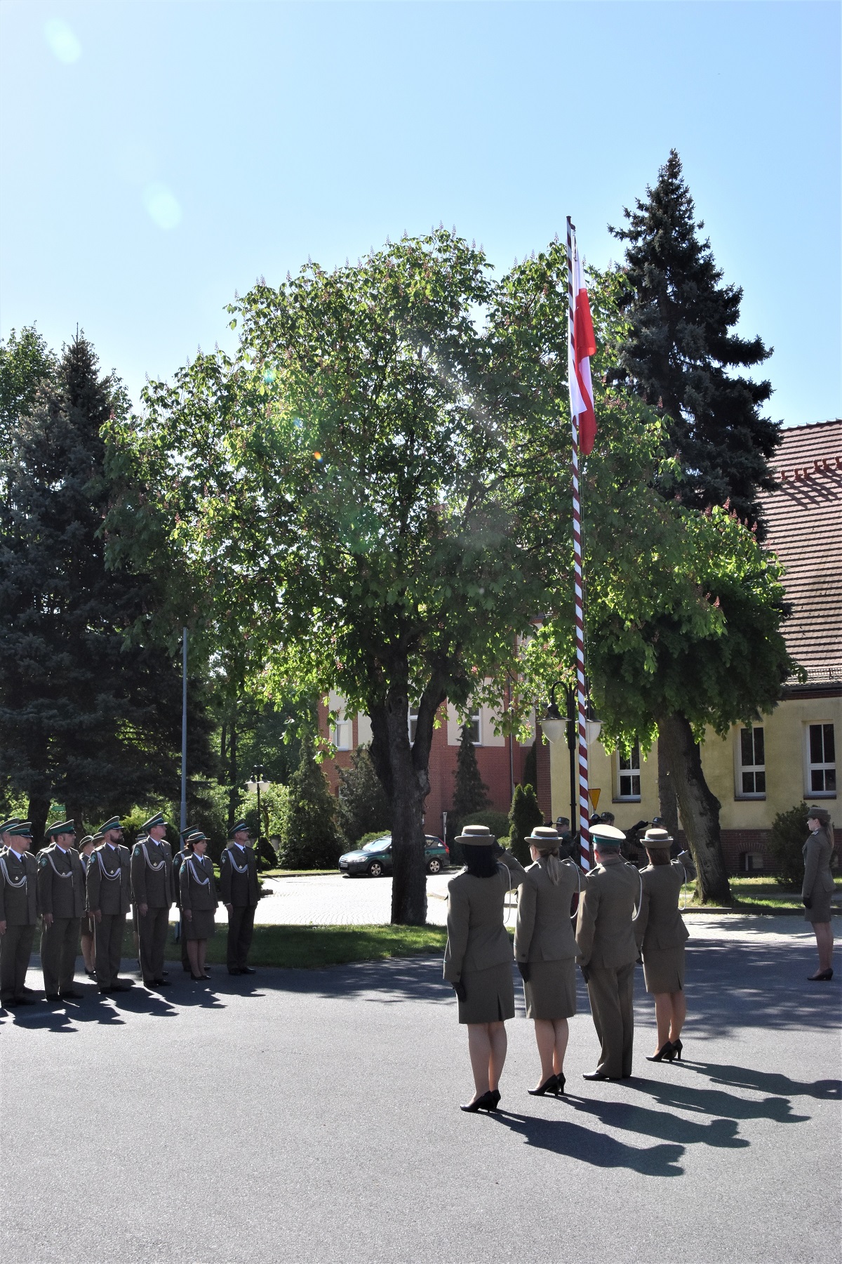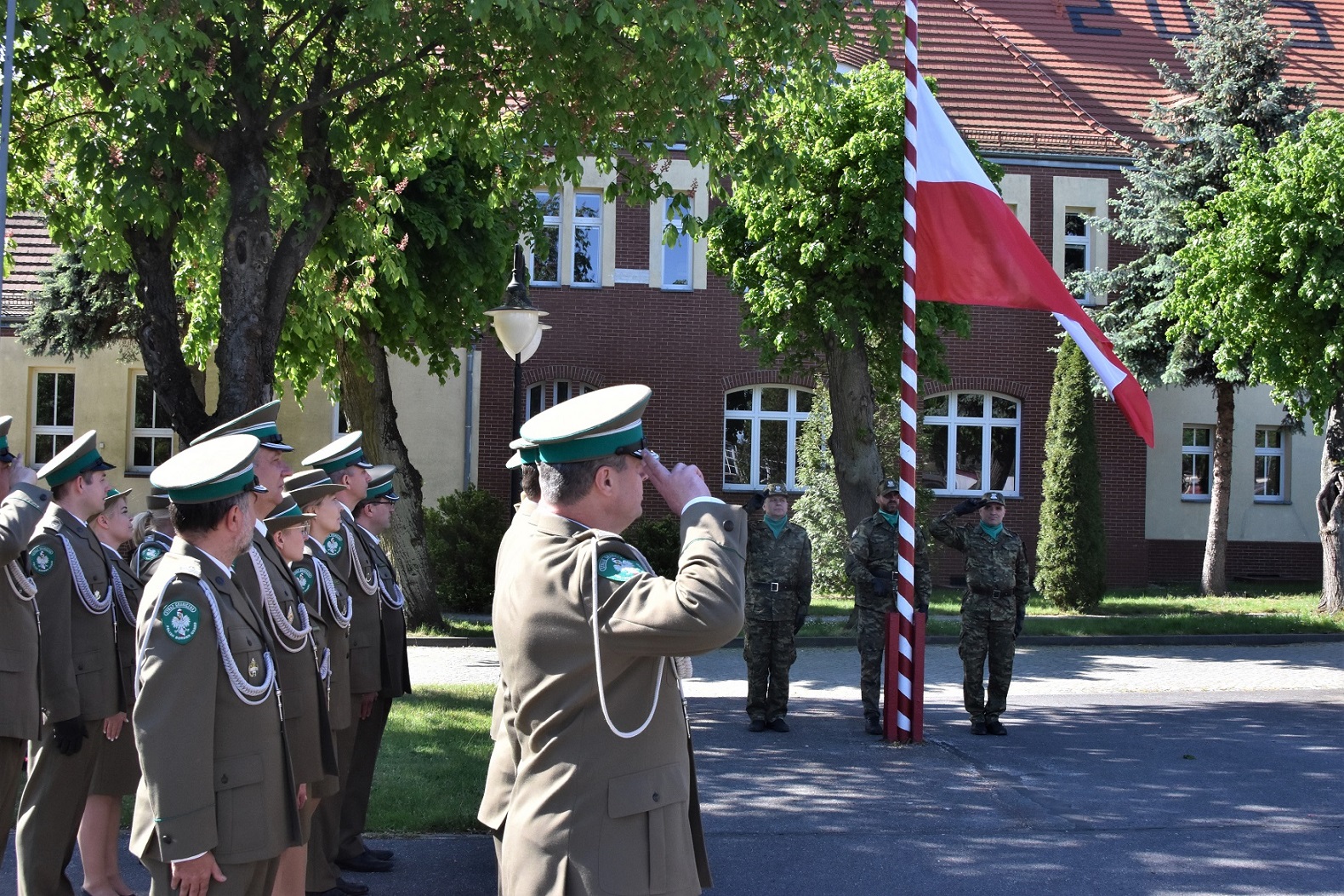 Dziś w komendzie Nadodrzańskiego Oddziału Straży Granicznej w obecności kierownictwa NoOSG oraz funkcjonariuszy i pracowników uroczyście podniesiono Flagę Rzeczypospolitej Polskiej.