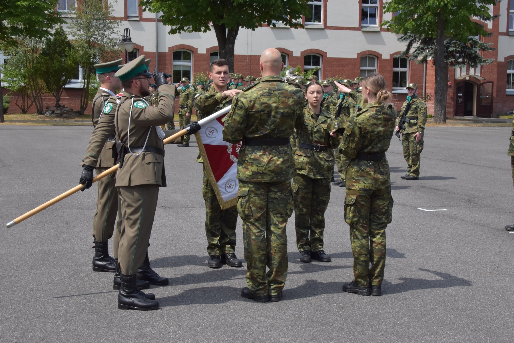 Następnie w obecności Sztandaru NoOSG nowo przyjęci funkcjonariusze złożyli uroczyste ślubowanie. Rotę ślubowania przyjęła od funkcjonariuszy Pani Komendant Nadodrzańskiego Oddziału Straży Granicznej płk SG Monika Musielak. Po złożeniu ślubowania, nowym funkcjonariuszom błogosławieństwa na służbowej drodze udzielił ks. por. SG Piotr Marciniak Kapelan NoOSG.