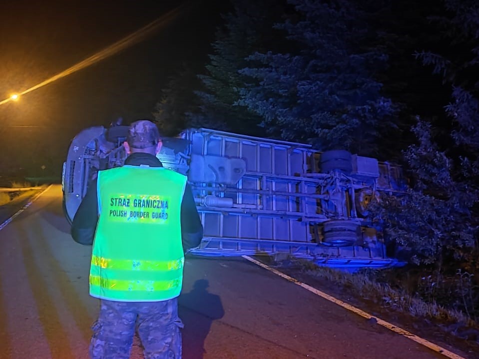 W nocy z 28 na 29 maja funkcjonariusze Straży Granicznej ze wspólnego polsko-czeskiego patrolu podczas przejazdu drogą krajową nr 33 w rejonie Międzylesia byli pierwszymi w miejscu niebezpiecznego zdarzenia drogowego. Kierowca dostawczego busa chcąc uniknąć zderzenia z dzikim zwierzęciem, wykonał nagły manewr samochodem, w konsekwencji którego dostawczy bus wywrócił się, tarasując przejazd na wąskiej, krętej drodze. Kłodzcy funkcjonariusze SG wraz z policjantem z czeskich Pardubic zareagowali natychmiast, zabezpieczyli miejsce zdarzenia przy użyciu pojazdu służbowego oraz wezwali policję oraz służby ratunkowe. Kierowca o własnych siłach wyszedł z uszkodzonego samochodu. Na szczęście jechał sam i nie ucierpiał podczas tego zdarzenia. Duży samochód dostawczy zablokował prawy pas drogi krajowej, co stwarzało niebezpieczeństwo dla innych uczestników ruchu drogowego. Do czasu przyjazdu służb ratunkowych strażnicy graniczni prowadzili działania mające na celu umożliwienie bezpiecznego przejazdu innym użytkownikom drogi oraz niedopuszczenie do zatarcia śladów i dowodów na miejscu zdarzenia.