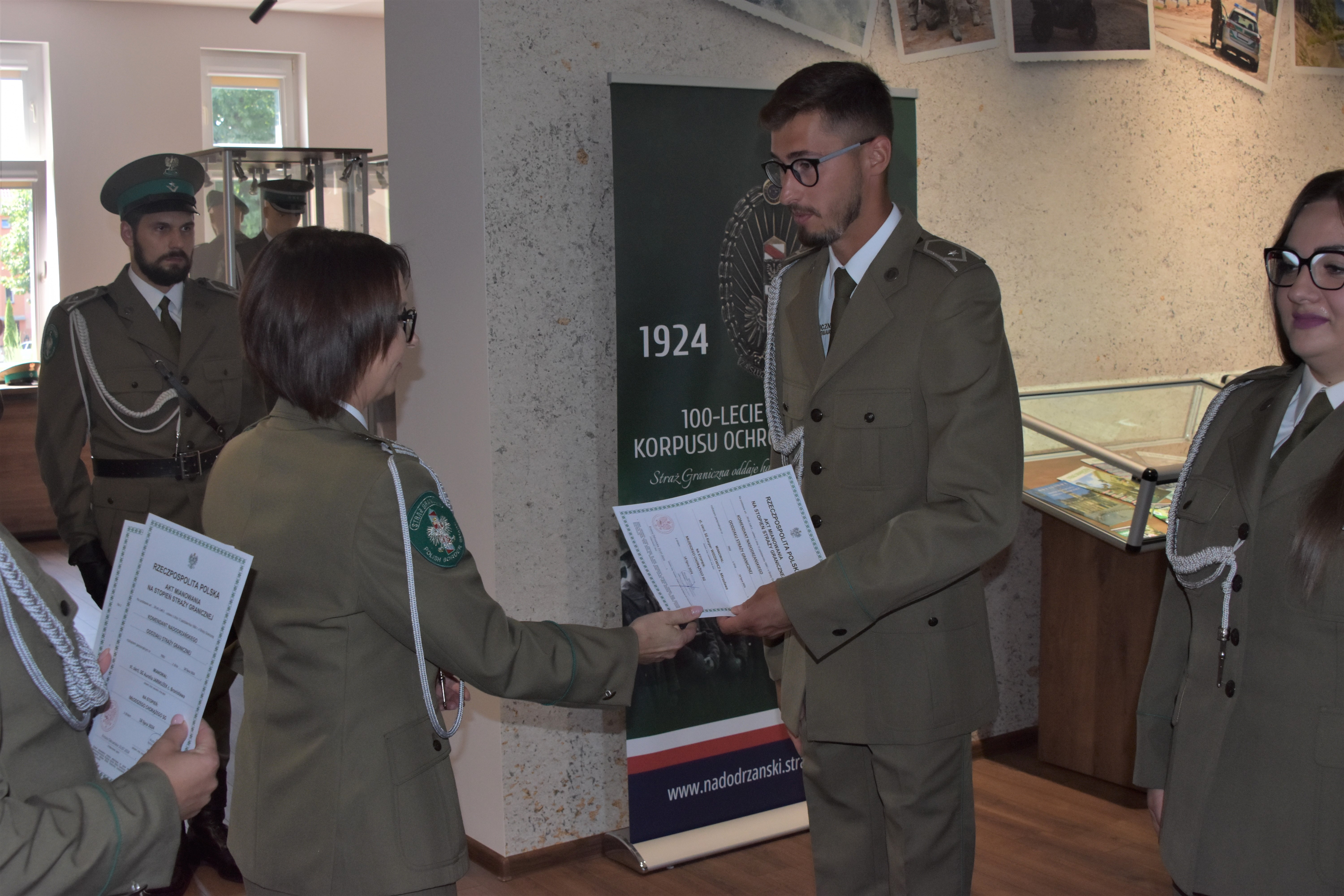 W Sali Tradycji Komendy Nadodrzańskiego Oddziału Straży Granicznej 1 sierpnia miała miejsce uroczystość wręczenia aktów mianowania na stopień Straży Granicznej 6 absolwentom szkoły chorążych i 10 absolwentom szkoły podoficerskiej. Komendant Nadodrzańskiego Oddziału SG płk SG Monika Musielak wręczyła nowym chorążym akty mianowania na stopień młodszego chorążego Straży Granicznej oraz absolwentom szkoły podoficerskiej - akty mianowania na stopień kaprala Straży Granicznej. Funkcjonariusze SG odebrali akty mianowania w obecności kadry kierowniczej Nadodrzańskiego Oddziału SG.