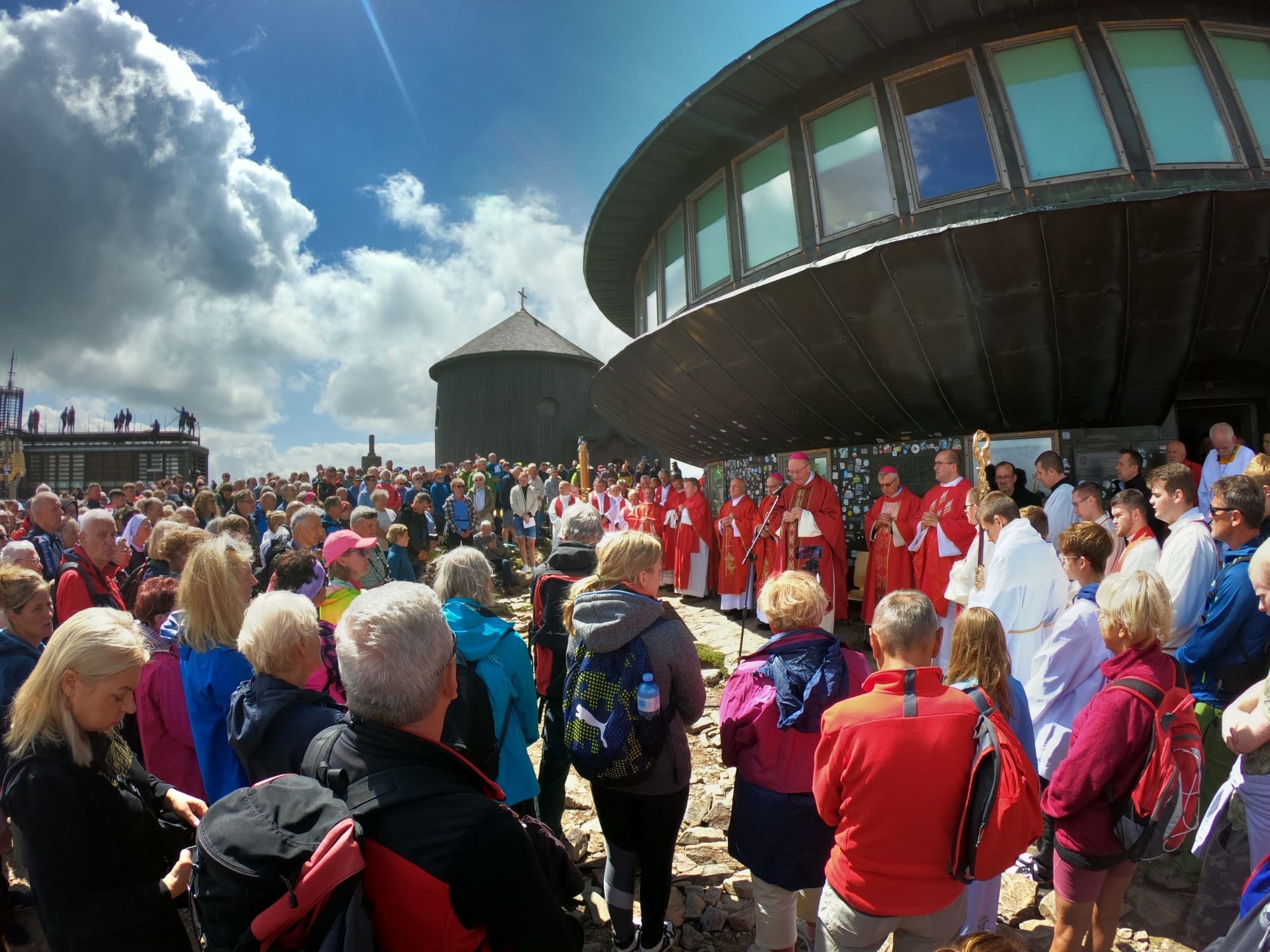 Wzorem poprzednich lat Msza św. odpustowa została odprawiona na zewnątrz kaplicy św. Wawrzyńca, pod dającym schronienie dachem obserwatorium meteorologicznego. W tym roku liturgii przewodniczyła „strona czeska”, a modlitwa popłynęła w językach pogranicza – polskim, czeskim i niemieckim.