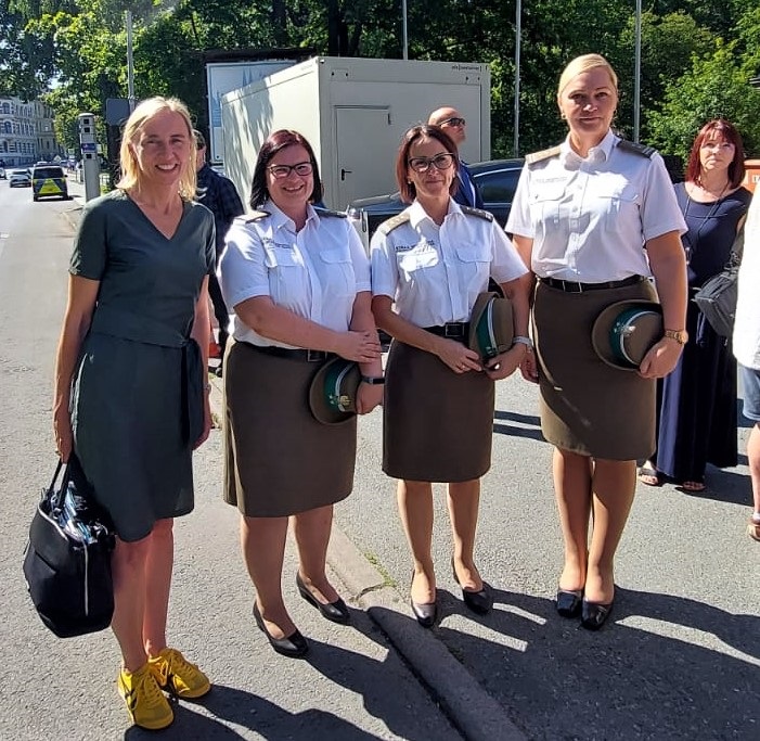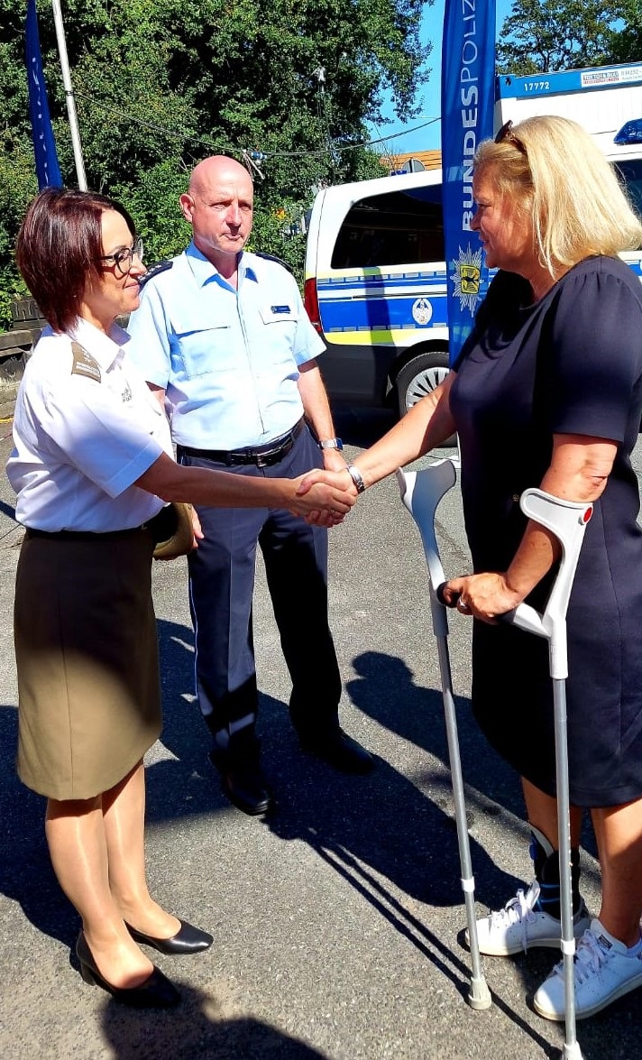 Komendant Nadodrzańskiego Oddziału Straży Granicznej płk SG Monika Musielak 13 sierpnia na zaproszenie Prezydenta Dyrekcji Policji Federalnej Niemiec w Pirnie uczestniczyła w siedzibie Inspekcji Policji Federalnej Niemiec w Gӧrlitz w spotkaniu funkcjonariuszy Dyrekcji Policji Federalnej Niemiec w Pirnie z Minister Spraw Wewnętrznych Republiki Federalnej Niemiec Nancy Faeser, wizytującej tego dnia punkt kontrolny w Gӧrlitz. W spotkaniu stronę polską reprezentowała ponadto ppłk SG Danuta Łazarczyk Oficer Łącznikowy SG przy Ambasadzie Polski w Berlinie oraz ppłk SG Julia Mandecka Komendant Placówki SG w Zgorzelcu. Z kolei ze strony niemieckiej w spotkaniu uczestniczyła członkini Bundestagu – Kathrin Michel oraz Szef Sztabu Dyrekcji Policji Federalnej w Pirnie Jörg Meier.