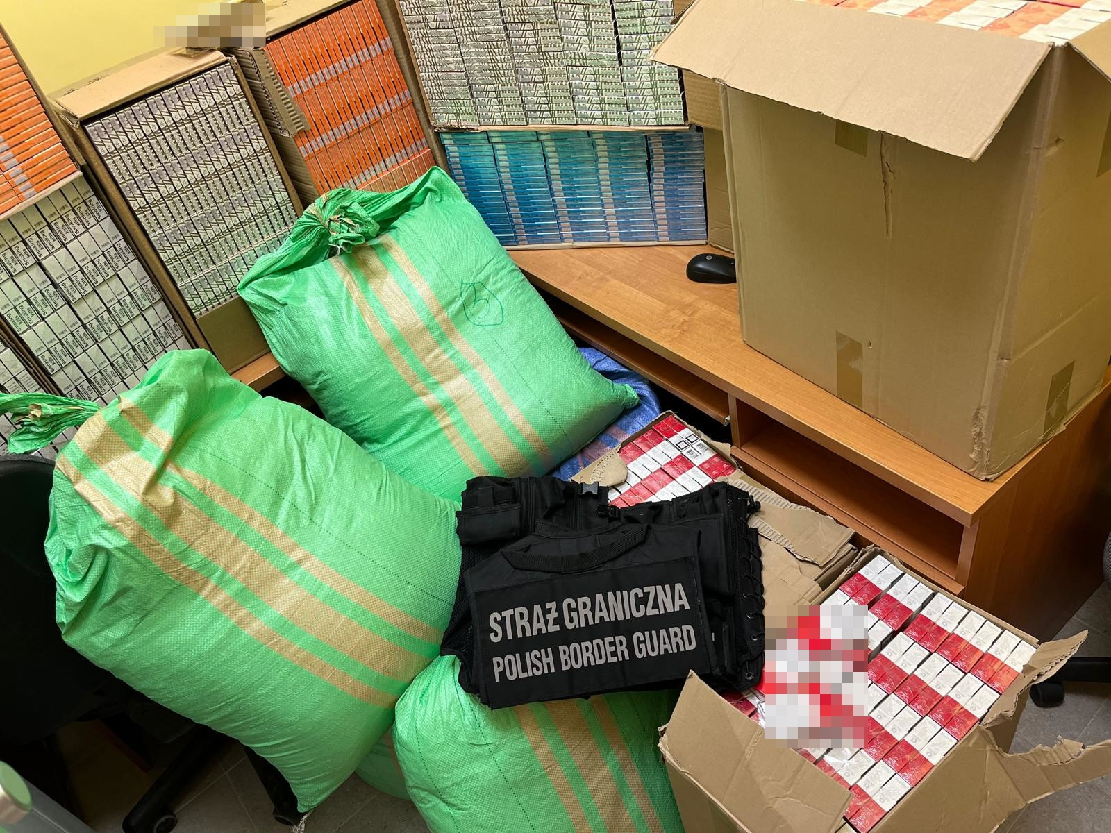 Podobną akcję 5 września przeprowadzili strażnicy graniczni z Placówki Straży Granicznej we Wrocławiu-Strachowicach. Podczas wykonywania czynności służbowych na terenie miasta w garażu jednej z posesji znaleźli ponad sto tys. sztuk papierosów oraz 115 kg suszu tytoniowego bez oznaczeń handlowych i polskich znaków skarbowych akcyzy. Do posiadania zatrzymanego towaru przyznał się 40-letni mieszkaniec Wrocławia, wobec którego wszczęto postępowanie karno-skarbowe. Z jego oświadczenia wynikało, że papierosy oraz tytoń miały być sprzedawane odbiorcom detalicznym na terenie powiatu wrocławskiego. Wartość zatrzymanego towaru przekroczyła 150 tys. zł. Teraz podejrzanemu grozi wysoka grzywna.