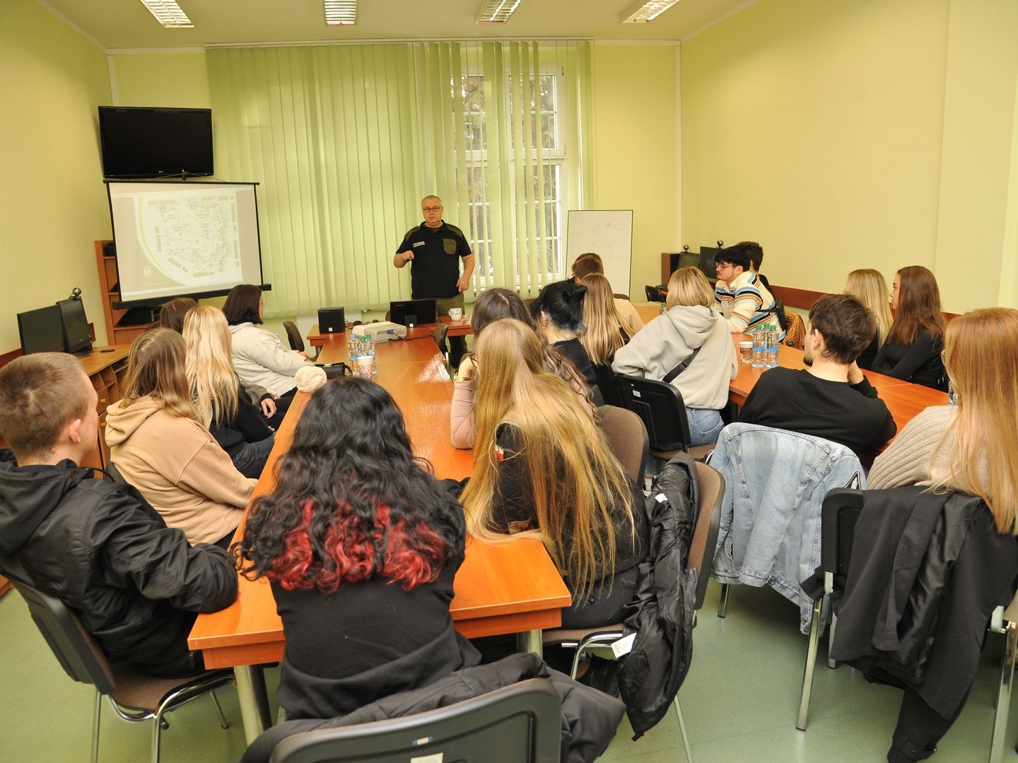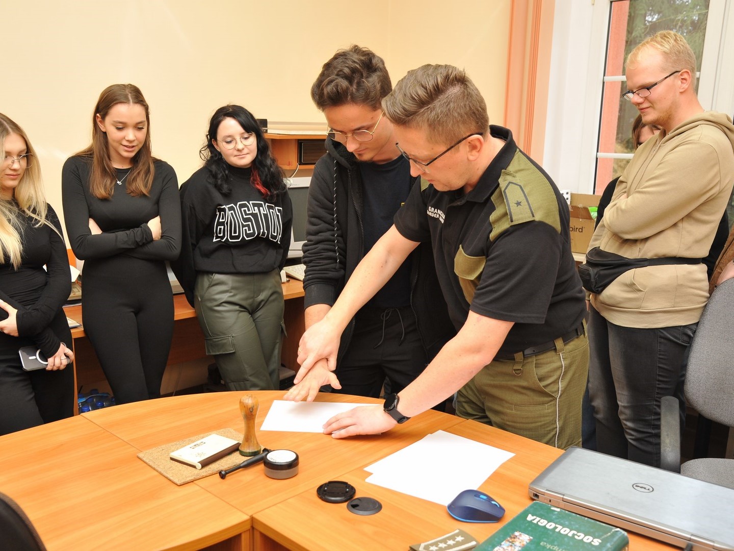 W tym samym dniu studenci Państwowej Akademii Nauk Stosowanych w Nysie odwiedzili funkcjonariuszy Placówki Straży Granicznej w Kłodzku. Były wykłady, prezentacja sprzętu służbowego i transportowego, zajęcia praktyczne z technikiem kryminalistyki. Tak kłodzcy strażnicy graniczni zachęcali studentów Koła Naukowego Bezpieczeństwa Wewnętrznego przy Wydziale Nauk Społecznych Państwowej Akademii Nauk Stosowanych w Nysie do wstąpienia w szeregi funkcjonariuszy Nadodrzańskiego Oddziału Straży Granicznej. Podczas wizyty studenci z zainteresowaniem przyglądali się naszej służbie, słuchali o roli Straży Granicznej w systemie bezpieczeństwa państwa, ćwiczyli ujawnianie odbitek linii papilarnych i oglądali sprzęt będący na wyposażeniu jednostki.
