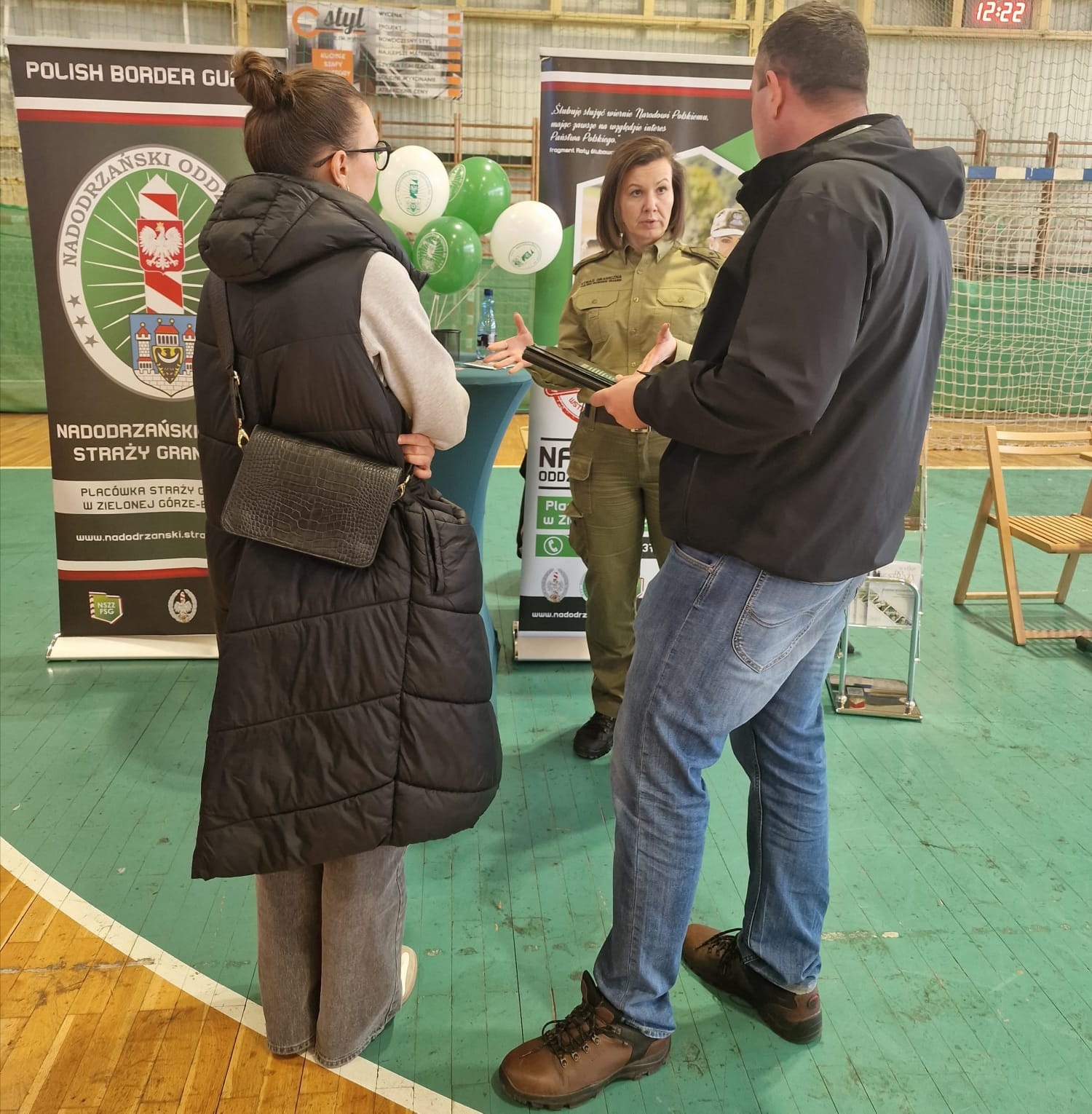 Targi pracy w hali Zespołu Szkół Licealnych i Technicznych w Gubinie - stoisko Straży Granicznej -