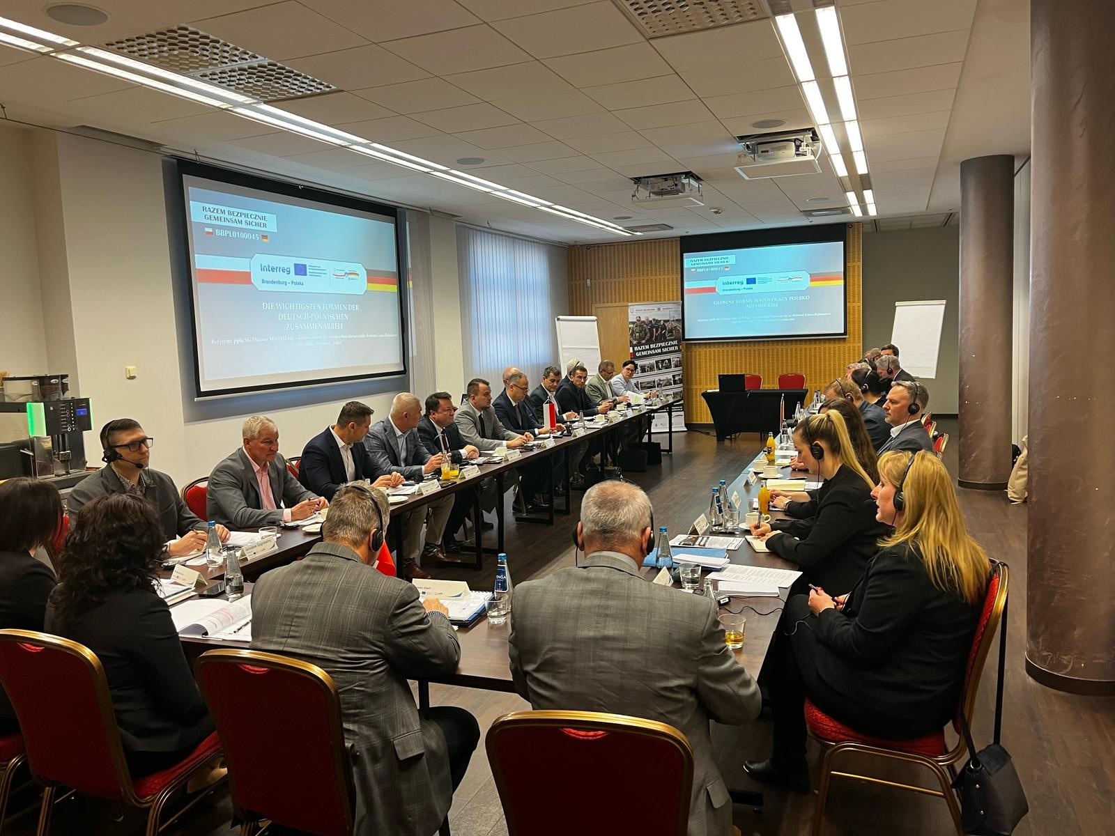 4 kwietnia w Zielonej Górze odbyła się sesja strategiczna w ramach wspólnego, partnerskiego projekturealizowanego przez Nadodrzański Oddział Straży Granicznej i Dyrekcję Policji Federalnej Niemiec w Berlinie pt. Razem bezpiecznie - Współpraca policyjna na pograniczu niemiecko-polskim - wspólne reagowanie na transgraniczne zagrożenia dla porządku publicznego lub bezpieczeństwa wewnętrznego - współfinansowanego przez Unię Europejską ze środków Europejskiego Funduszu Rozwoju Regionalnego w ramach Programu Współpracy INTERREG VI A Brandenburgia-Polska 2021 - 2027.