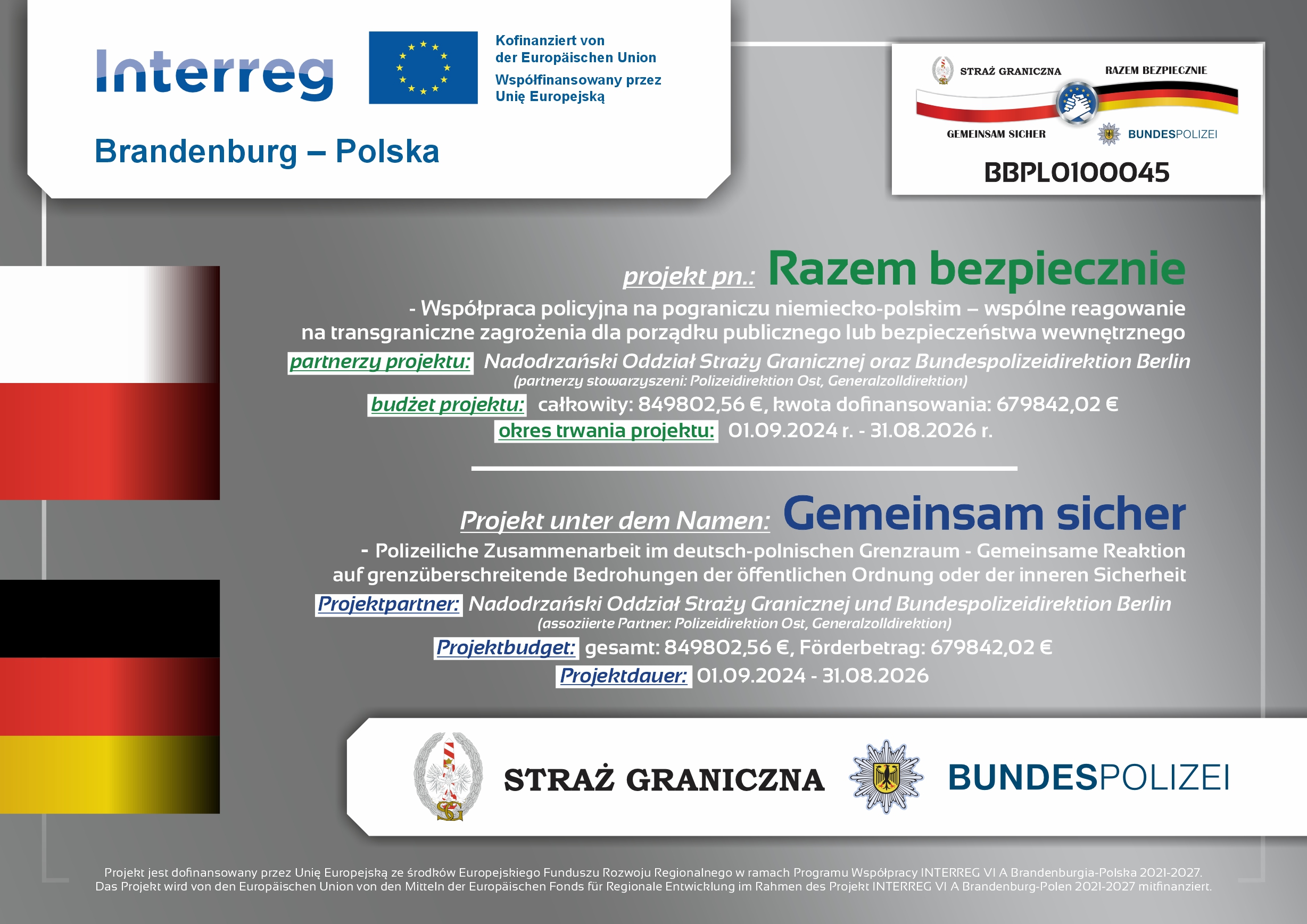 Dzięki współpracy z Zarządem Oddziałowym NoOSG oraz środkom z projektu: Razem bezpiecznie - Współpraca policyjna na pograniczu niemiecko-polskim - wspólne reagowanie na transgraniczne zagrożenia dla porządku publicznego lub bezpieczeństwa wewnętrznego - współfinansowany przez Unię Europejską ze środków Europejskiego Funduszu Rozwoju Regionalnego w ramach Programu Współpracy INTERREG VI A Brandenburgia-Polska 2021 – 2027, organizatorzy zapewnili profesjonalną oprawę oraz odpowiednie warunki do rywalizacji, gwarantując tym samym sukces tej sportowej imprezy.