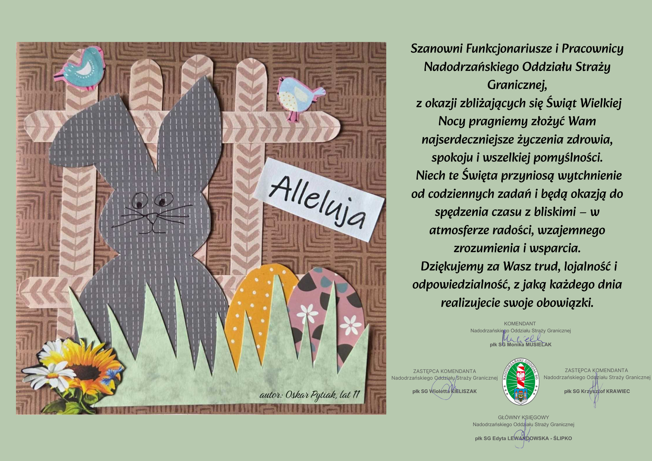 Wielkanocne życzenia kierownictwa Nadodrzańskiego Oddziału Straży Granicznej