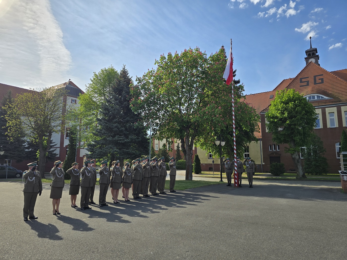 Kierownictwo oddziału, funkcjonariusze i pracownicy Nadodrzańskiego Oddziału SG, w podniosłej atmosferze wzięli udział w uroczystości Dnia Flagi Rzeczypospolitej Polskiej.