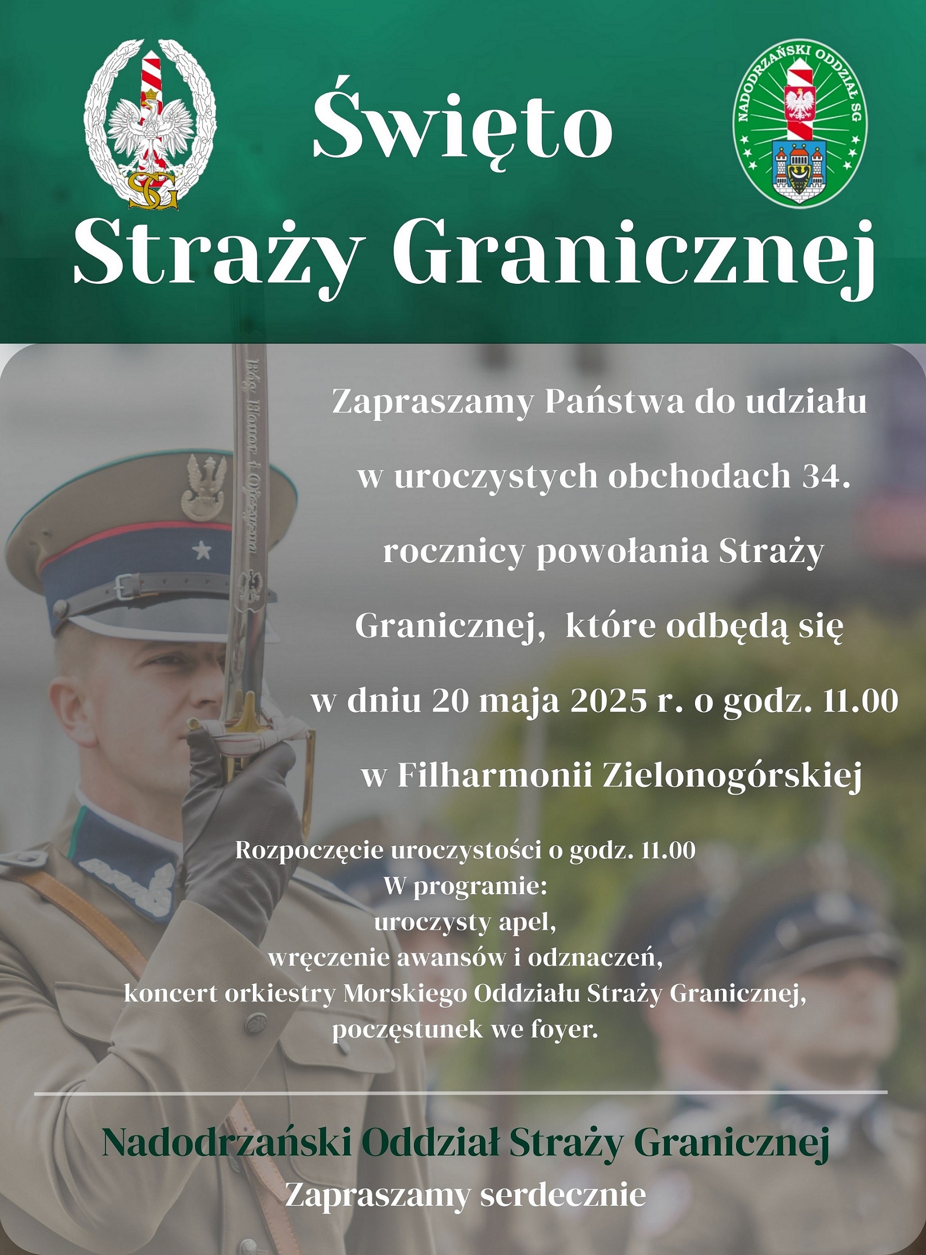 Funkcjonariusze i pracownicy Nadodrzańskiego Oddziału Straży Granicznej swoje święto obchodzić będą 20 maja w Filharmonii Zielonogórskiej.