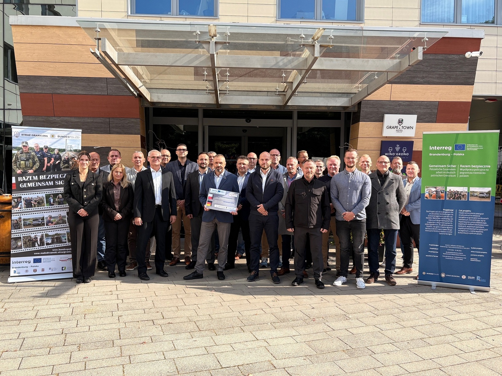 2 października w Zielonej Górze, odbyło się polsko – niemieckie spotkanie koordynacyjne realizowane przez Nadodrzański Oddział Straży Granicznej i Dyrekcję Policji Federalnej Niemiec w Berlinie pt. Razem bezpiecznie - Współpraca policyjna na pograniczu niemiecko-polskim - wspólne reagowanie na transgraniczne zagrożenia dla porządku publicznego lub bezpieczeństwa wewnętrznego, współfinansowana przez Unię Europejską ze środków Europejskiego Funduszu Rozwoju Regionalnego w ramach Programu Współpracy INTERREG VI A Brandenburgia-Polska 2021 - 2027.