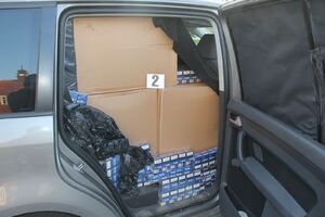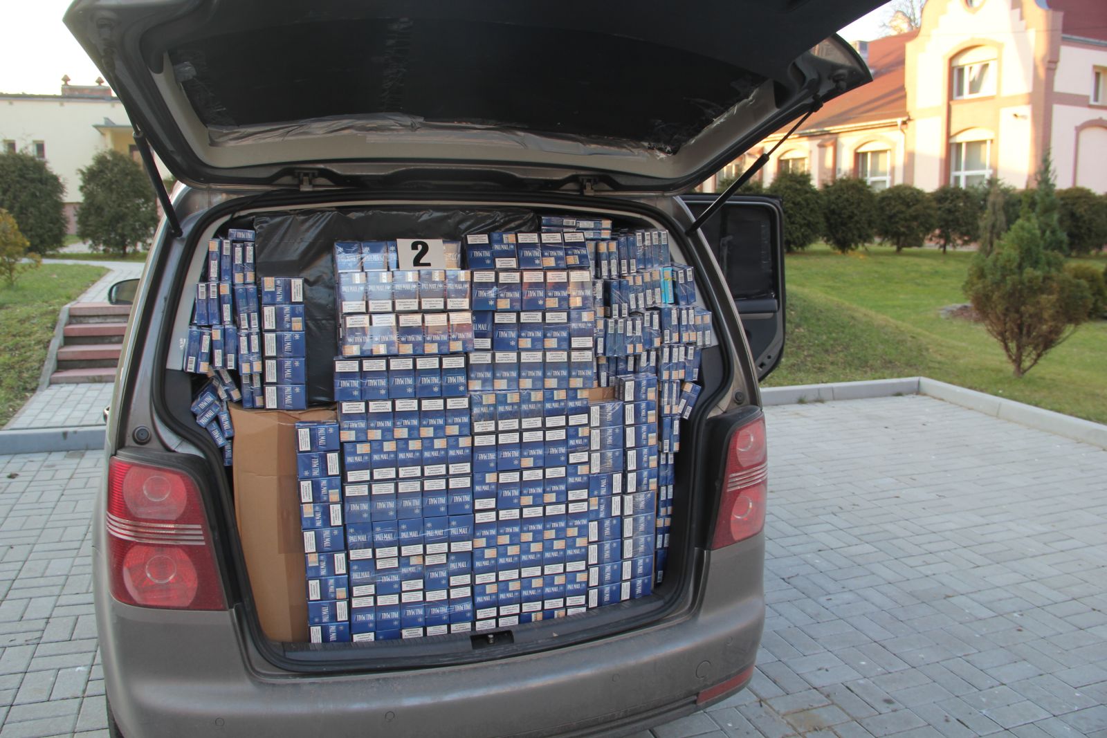 Funkcjonariusze w czasie działań prowadzonych w powiecie świebodzińskim poddali kontroli dwa samochody osobowe marki Citroen C5 oraz VW Touran na polskich numerach rejestracyjnych. Po sprawdzeniu bagażników obu pojazdów okazało się, że zawarty jest w nich nielegalny towar. W Citroenie C5 ujawniono ponad 220 tys. sztuk papierosów różnych marek, natomiast w VW Touran przeszło 330 tys. sztuk papierosów bez polskich znaków akcyzy oraz z akcyzą ukraińską, co łącznie dało ponad 550 tys. sztuk nielegalnych papierosów. Pojazdy prowadzone były przez obywateli RP, którzy zostali zatrzymani.