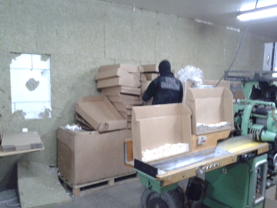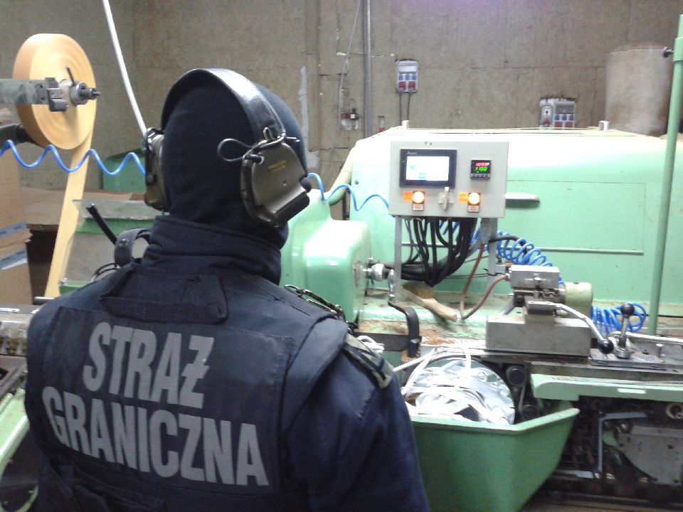 W wyniku dynamicznie prowadzonych działań 12 lutego br. funkcjonariusze Nadodrzańskiego Oddziału Straży Granicznej z Placówki w Tuplicach zlikwidowali kolejną nielegalną fabrykę wyrobów tytoniowych, w której produkowano papierosy oznaczone znakiem towarowym różnych marek. W momencie przeprowadzanej akcji pakowano Jin Ling. W jednej z podpoznańskich miejscowości ujawniliśmy kompletną linię technologiczną, w tym specjalistyczne maszyny o wartości ok. 600 000 , różnego rodzaju komponenty wykorzystywane przy produkcji papierosów, filtry oraz bibułki papierosowe.