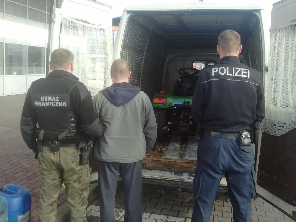 Kierujący kontrolowanym pojazdem mężczyzna, Polak, mieszkaniec województwa pomorskiego, posiadał odręczny dokument zakupu mikrociągnika rzekomo wydany przez belgijską firmę. Po sprawdzeniach okazało się, że pojazd ten nie figuruje w bazach, ale numer seryjny wskazał na niemieckiego właściciela. Powstało podejrzenie , że pochodzi z kradzieży, a odręcznie wypisana kartka papieru miała zmylić funkcjonariuszy. I tym razem polsko - niemiecki patrol po raz kolejny wykazał swą skuteczność i szybki przepływ informacji. Funkcjonariusze z Policji Federalnej Niemiec skontaktowali się z właścicielem, który potwierdził, że miejsce przechowywania mikrociągnika jest puste. Polak został zatrzymany za posiadanie skradzionej rzeczy. Postępowanie wyjaśni jak skradziony pojazd znalazł się w jego samochodzie i dokąd miał trafić. Sprawę do dalszego prowadzenia przekazano policji.