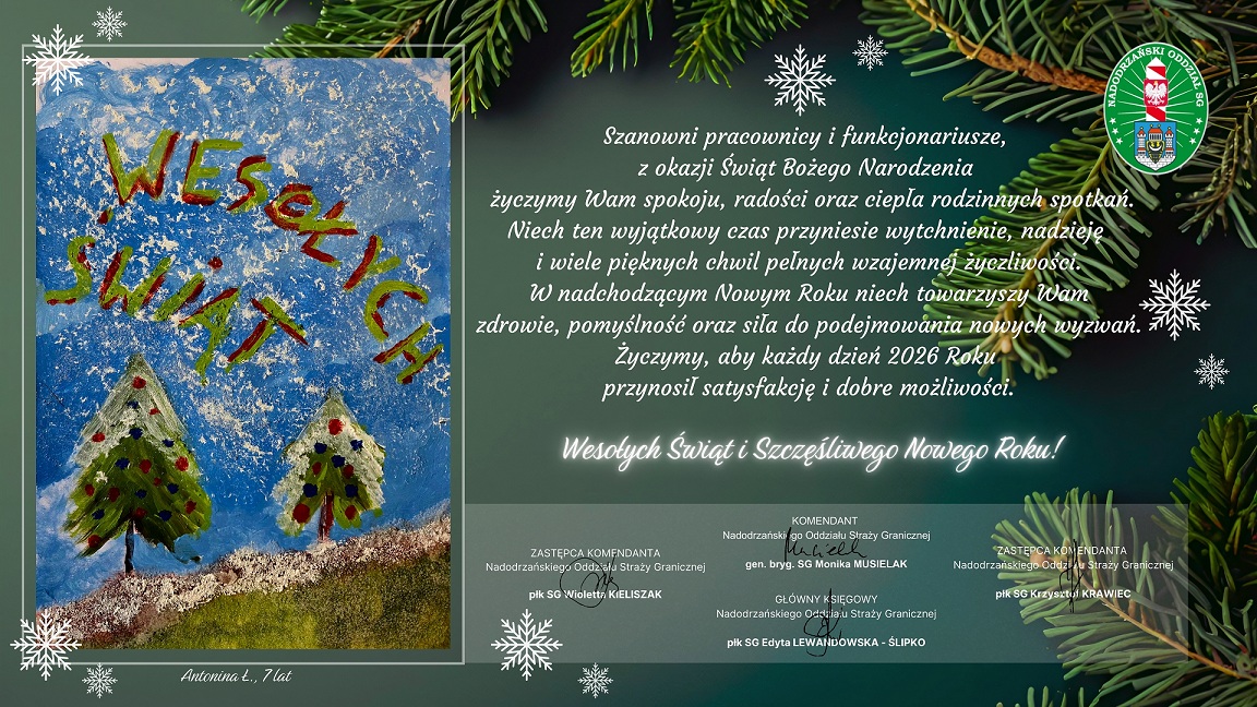 Świąteczne życzenia kierownictwa Nadodrzańskiego Oddziału Straży Granicznej