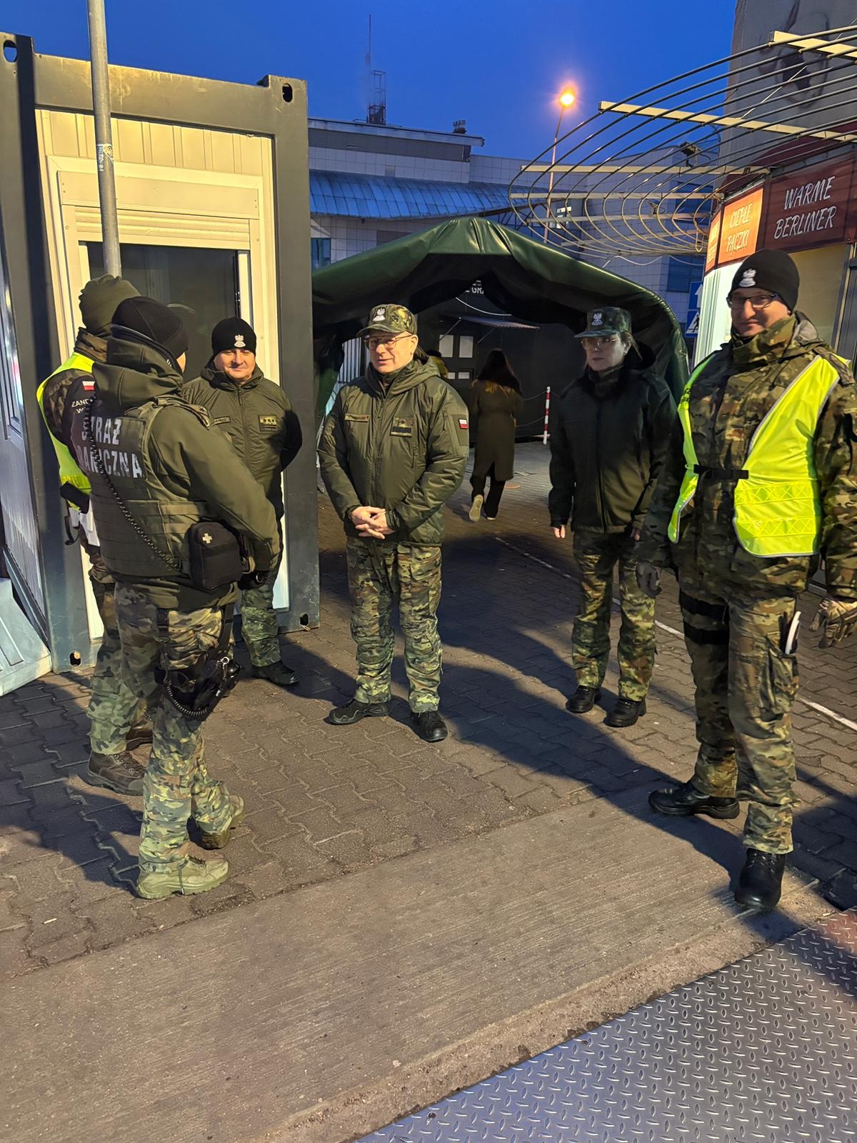 Zastępca Komendanta Głównego Straży Granicznej spotkał się z funkcjonariuszami pełniącymi służbę bezpośrednio na granicy, dziękując im za profesjonalizm i zaangażowanie w realizację powierzonych zadań. Podczas wizyty zapoznał się również z organizacją służby funkcjonariuszy, warunkami prowadzenia kontroli oraz jej wpływem na płynność ruchu granicznego.