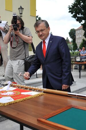 Podczas apelu uroczyście poświęcono proporzec, wbito gwoździe w drzewiec proporca oraz złożono wpisy do księgi pamiątkowej.