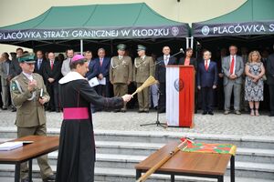 Kpt. SG Piotr Piekarski, komendant Placówki SG w Kłodzku podkreślił, że wręczenie weksylium odbiera „jako dowód wdzięczności, a przede wszystkim jako podkreślenie nierozerwalnego związku Straży Granicznej z Ziemią Kłodzką”. Za życzliwość, wsparcie i zaangażowanie podziękował parlamentarzystom oraz władzom samorządowym.